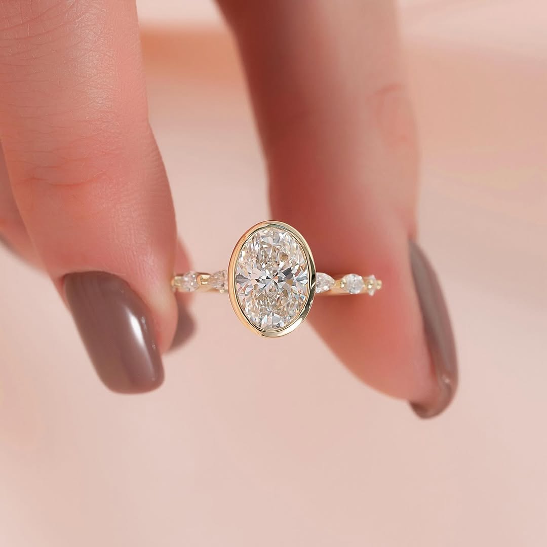 ✦Shine with modern elegance in this 2.0CT Oval Diamond Bezel Pave Setting Lab-Grown Engagement Ring. The elongated oval center stone is securely framed in a sleek bezel setting, while the sparkling pave band adds extra brilliance. Crafted with ethical lab-grown diamonds, it blends contemporary style with sustainable luxury. Perfect for those who appreciate refined details and timeless beauty. This ring is a graceful symbol of love and lasting commitment.