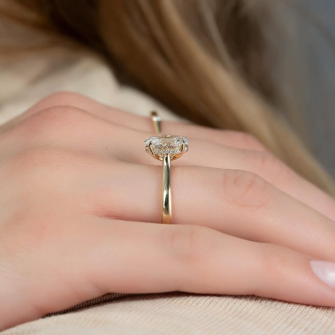 2.0CT Oval Diamond Hidden Halo Lab Grown Engagement Ring