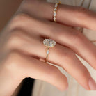 ✦A radiant 2.0CT oval cut lab grown diamond takes center stage in this elegant three-stone engagement ring, beautifully complemented by two sparkling side stones. The elongated oval silhouette enhances brilliance while symbolizing your past, present, and future. Crafted with ethically sourced lab grown diamonds, it offers a sustainable and luxurious choice. Perfect for those who love timeless elegance with meaningful design.