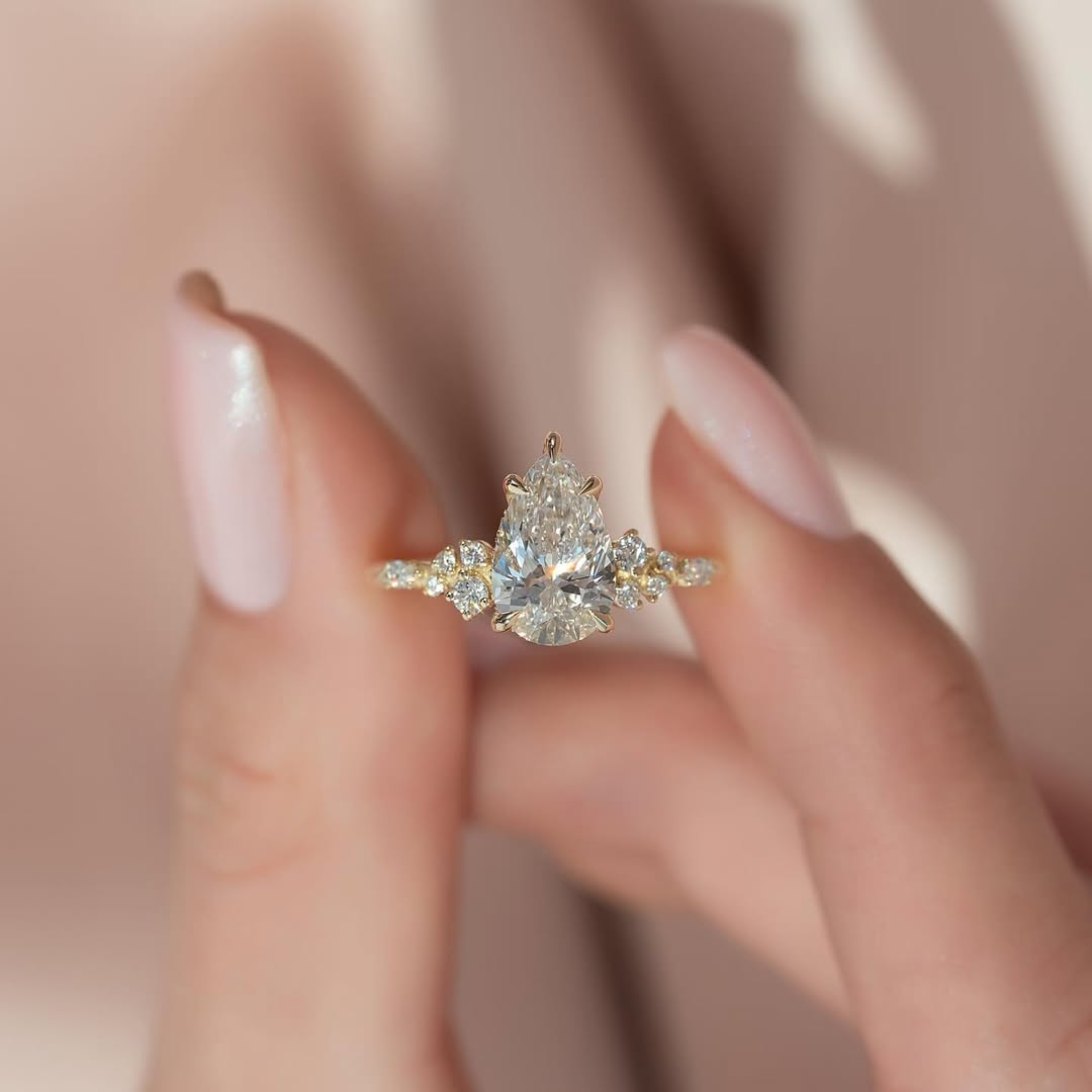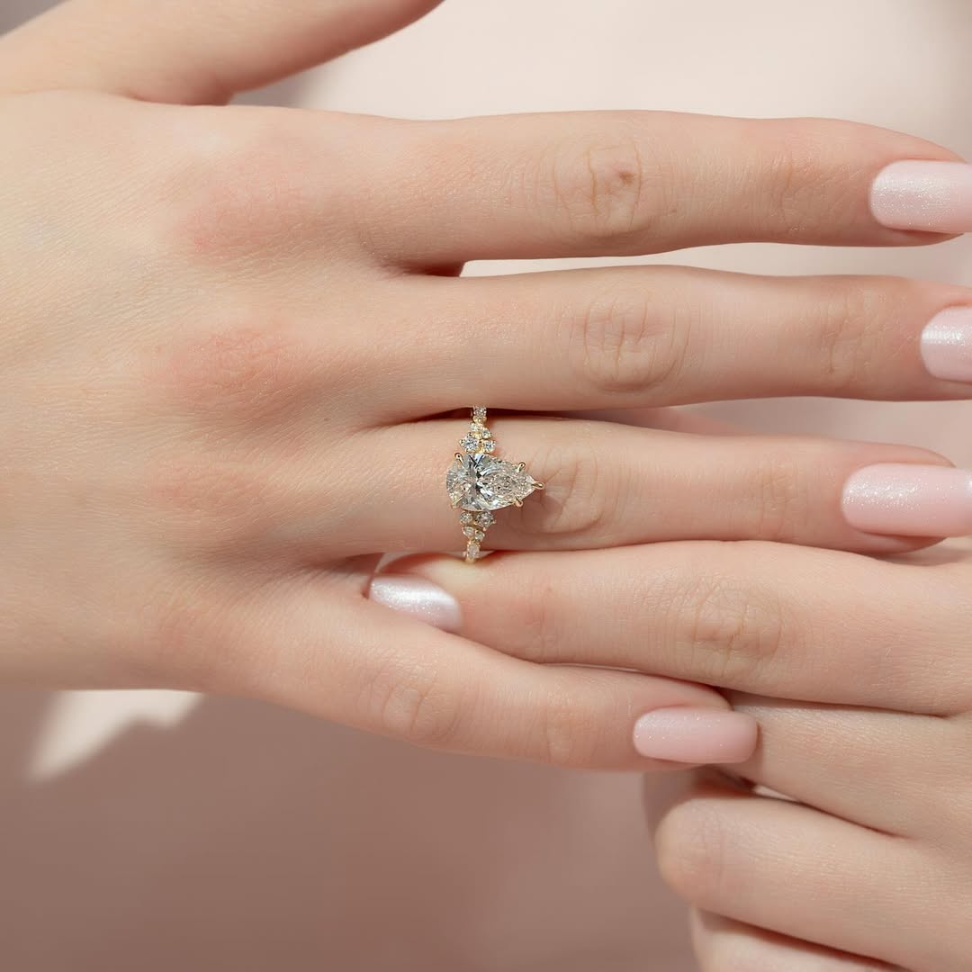 2.0CT Pear Diamond Hidden Halo Cluster Setting Lab Grown Engagement Ring