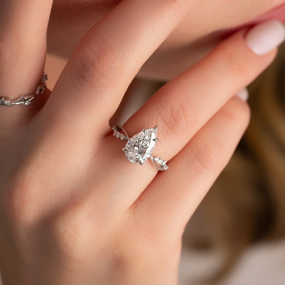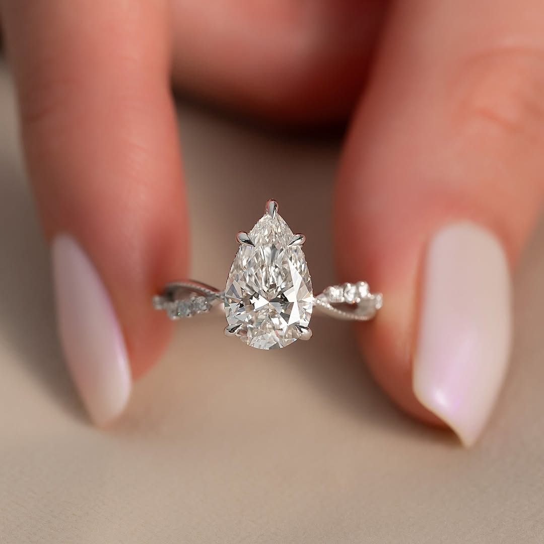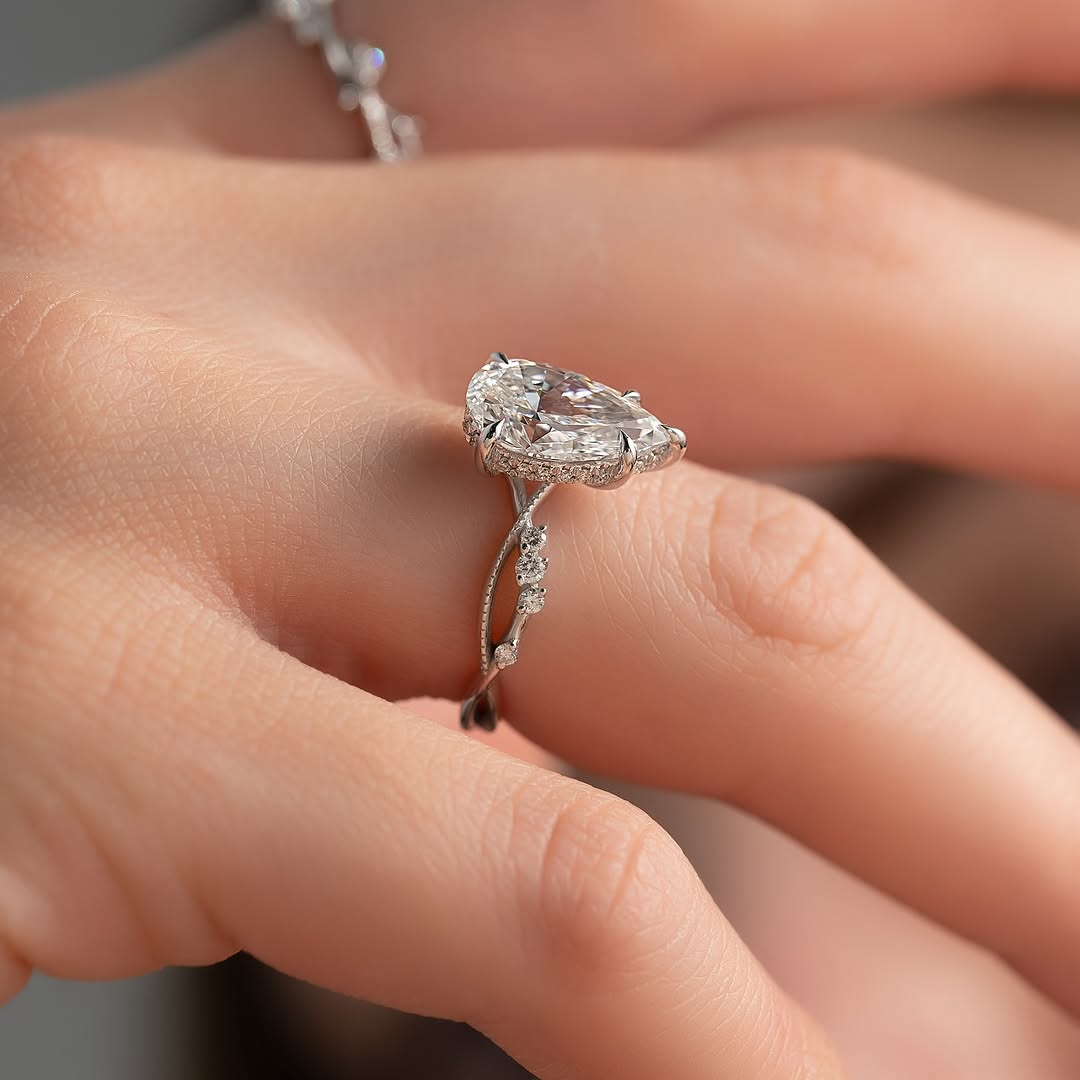 2.0CT Pear Diamond Nature Inspired Unique Lab Grown Engagement Ring