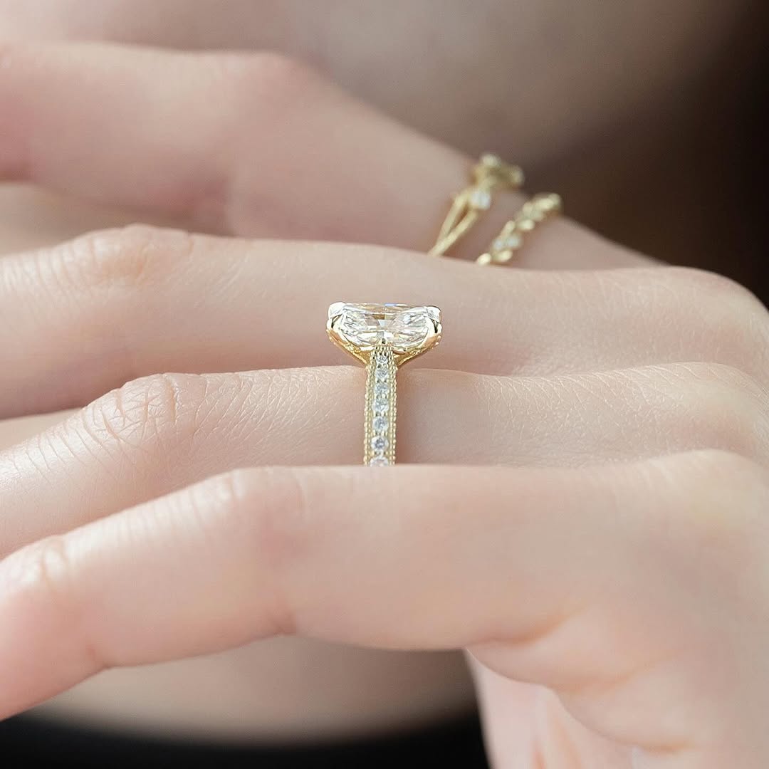 2.0CT Radiant Diamond Three Side Pave Setting Vintage Lab Grown Ring
