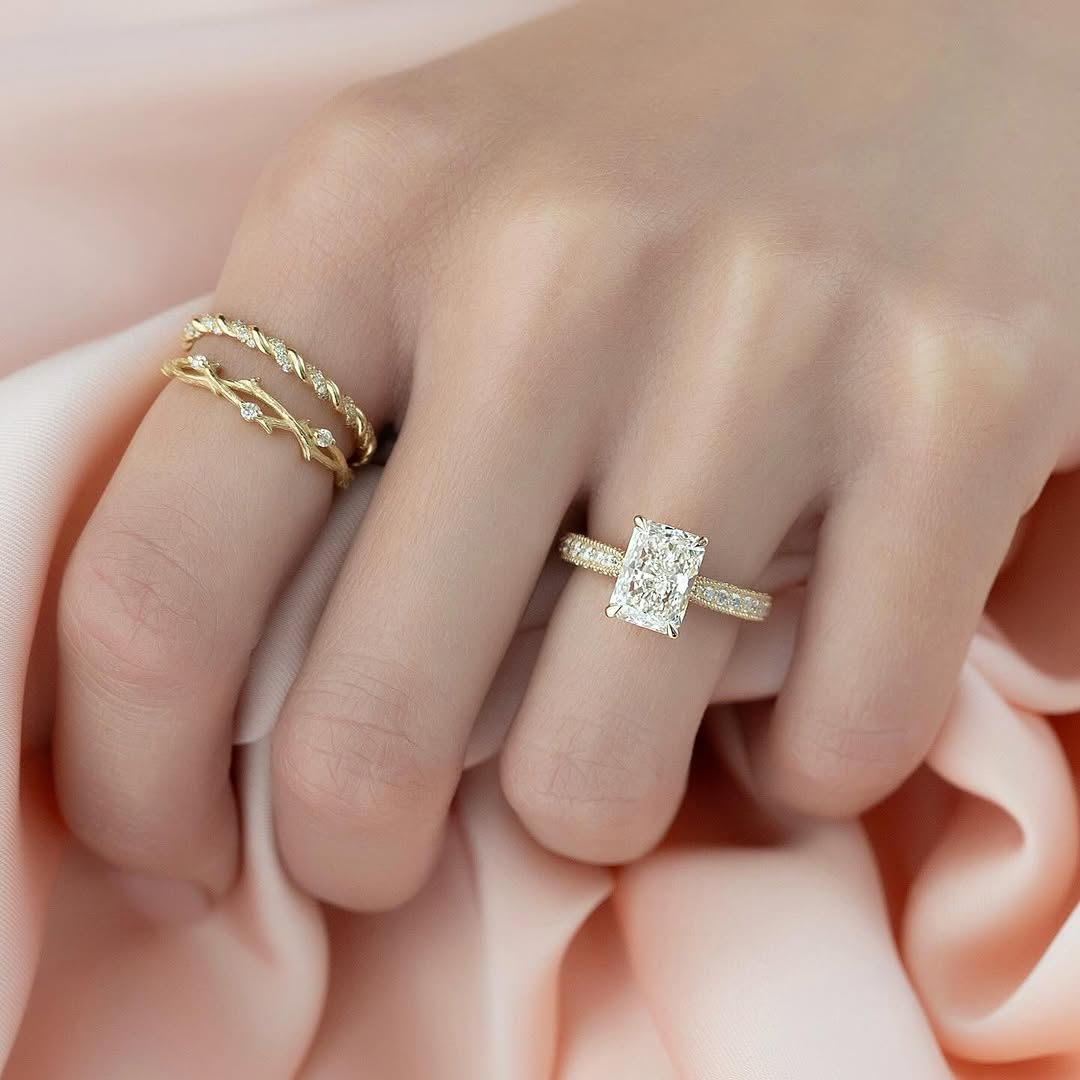 ✦This 2.0CT radiant diamond three-side pave vintage engagement ring combines brilliance with intricate detailing. The lab-grown center stone offers exceptional sparkle, clarity, and an ethical choice for modern buyers. The three-side pave setting enhances the band with continuous shimmer, creating a luxurious and eye-catching effect. Vintage-inspired accents add timeless charm and refined character to the design. Perfect for a romantic proposal, this ring beautifully blends classic elegance with contemporary craftsmanship.