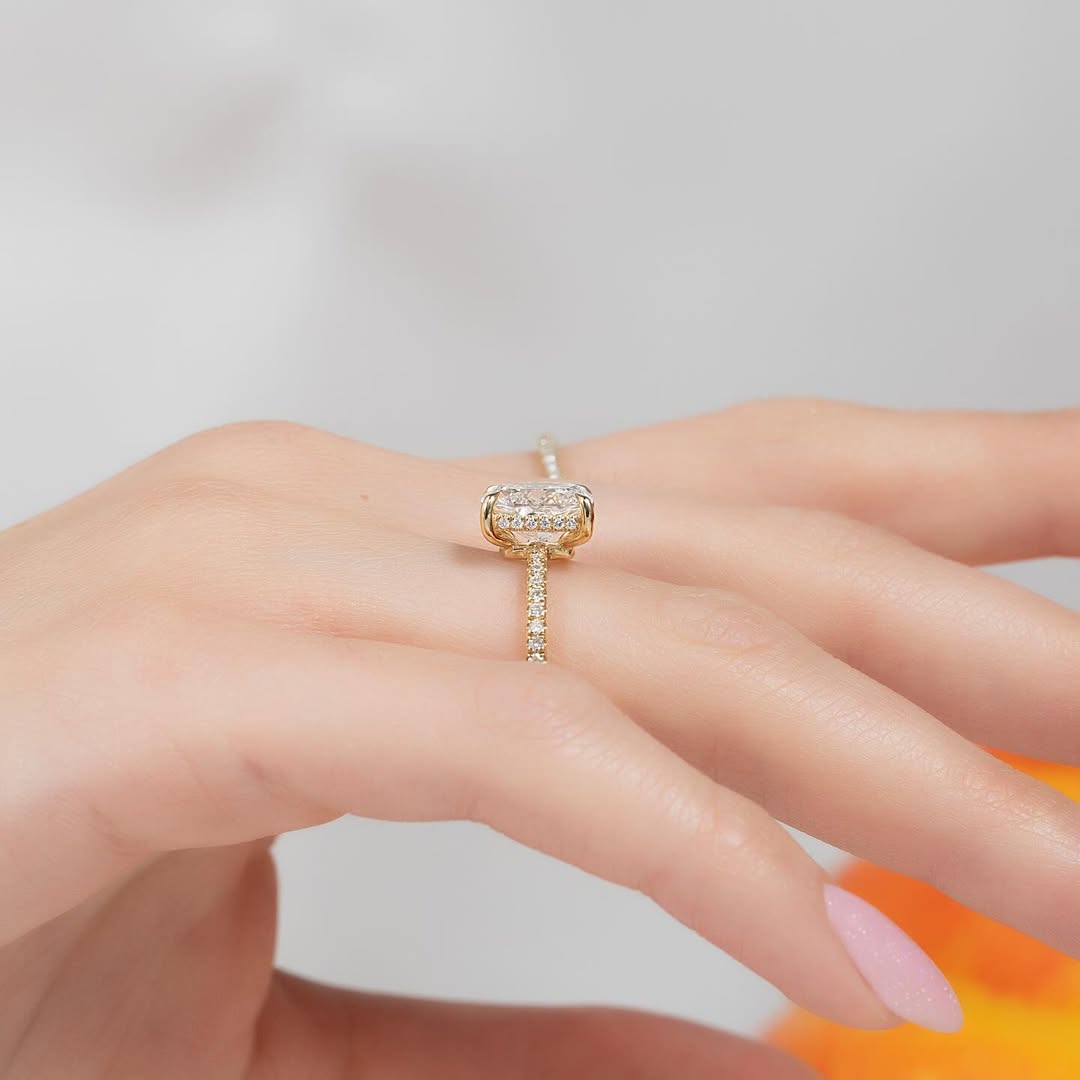 2.50CT Elongated Cushion Diamond Pave Setting Lab Grown Engagement Ring