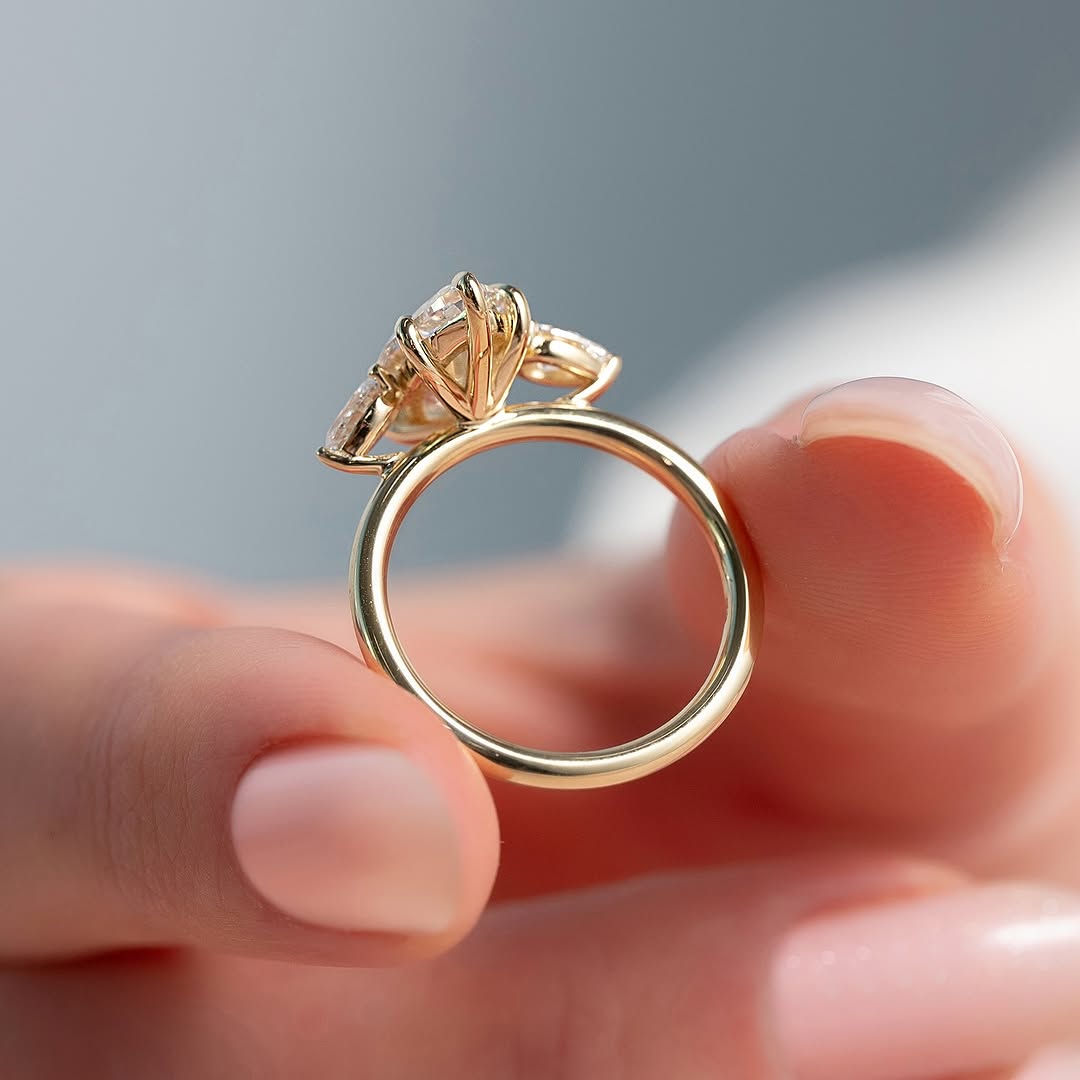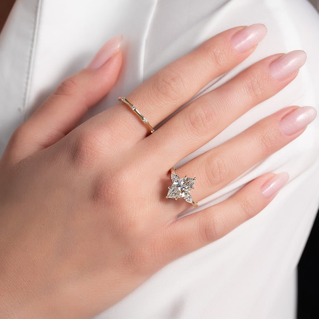 ✦This 2.50CT marquise diamond three-stone engagement ring features a distinctive and elegant silhouette. The lab-grown center diamond delivers exceptional brilliance, clarity, and an ethical choice. The three-stone design beautifully represents the past, present, and future, adding meaningful symbolism to the piece. Flanked by matching side stones, the setting enhances the elongated shape and overall sparkle. Perfect for a sophisticated proposal, this ring combines timeless charm with modern craftsmanship.