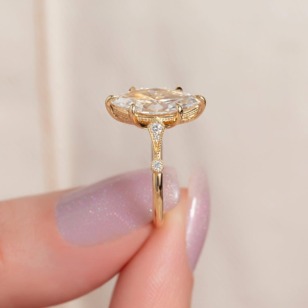 ✦Step into timeless elegance with this 2.50CT Marquise Diamond Vintage Style Lab-Grown Engagement Ring. The striking marquise-cut center stone is set in a vintage-inspired design, featuring intricate detailing that enhances its brilliance and classic charm. Expertly crafted in your choice of precious metal, it blends old-world sophistication with modern luxury. Perfect for engagements or memorable milestones, it sparkles beautifully from every angle. A refined symbol of love designed to be treasured forever.