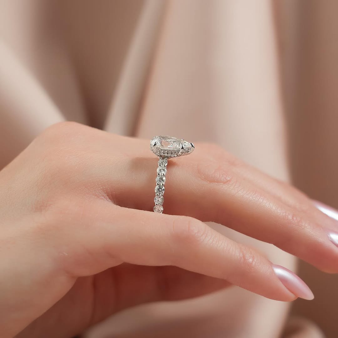 2.50CT Pear Diamond Pave Setting Hidden Halo Lab Grown Engagement Ring