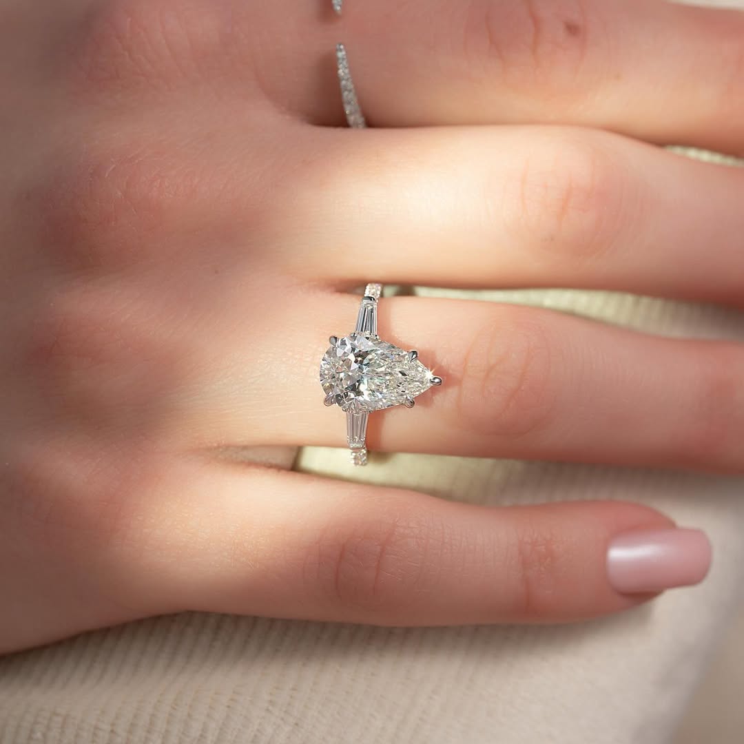 2.50CT Pear Diamond Three Stone Pave Setting Lab Grown Engagement Ring