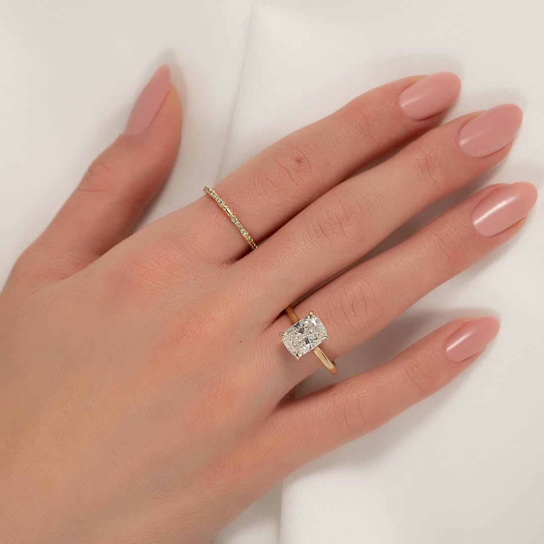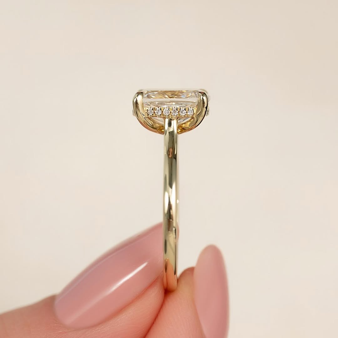 ✦A breathtaking 3.0CT elongated cushion cut lab grown diamond shines at the center of this hidden halo engagement ring, offering exceptional brilliance and elegance. The elongated silhouette enhances finger length, while the hidden halo adds subtle sparkle beneath the center stone. Crafted with ethically sourced lab grown diamonds, it delivers sustainable luxury with refined craftsmanship. Perfect for those who appreciate modern sophistication with timeless charm.