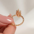 ✦A striking 3.0CT marquise cut lab grown diamond is beautifully showcased in this hidden halo engagement ring with a graceful twisted band. The hidden halo enhances the diamond’s brilliance, while the twisted design adds a romantic, modern touch. Crafted with ethically sourced lab grown diamonds, it offers sustainable luxury with elegant craftsmanship. Perfect for those who love distinctive design paired with timeless sparkle.