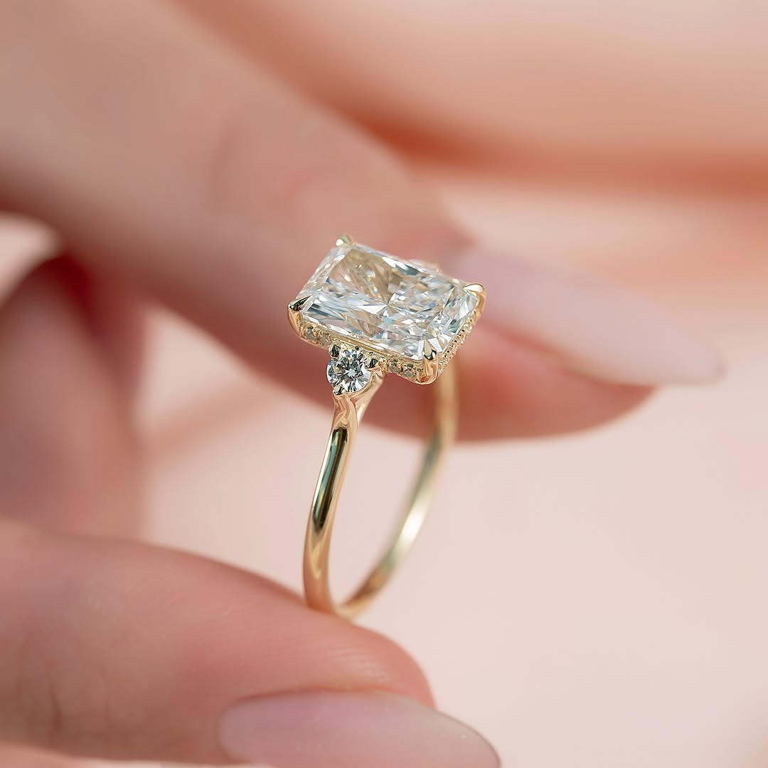 3.0CT Radiant Diamond Three Setting Stone Lab Grown Engagement Ring