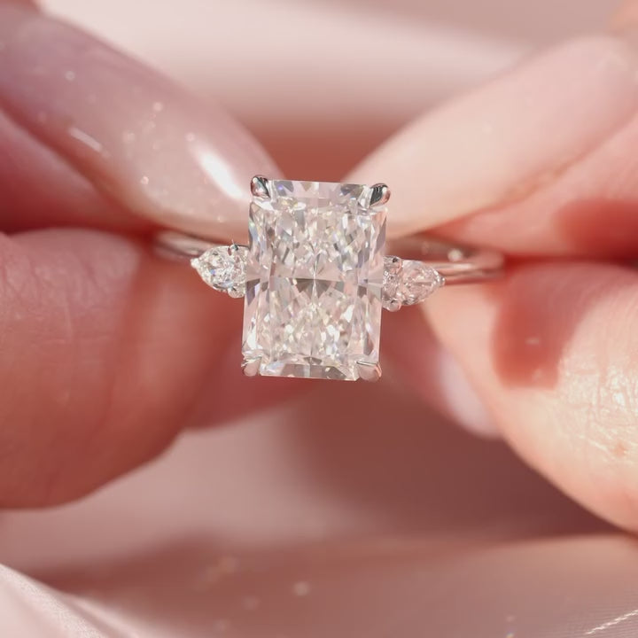 3.0CT Radiant Diamond Three Stone Lab Grown Engagement Ring