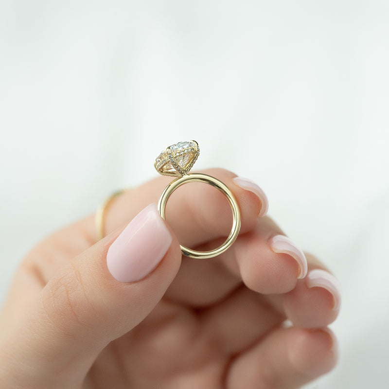 ✦Shine brighter than ever with this 3.50CT Oval Diamond Hidden Halo engagement ring, designed to capture light from every angle. The hidden halo adds a subtle yet stunning sparkle, enhancing the lab-grown diamond’s brilliance. Ethically crafted, this ring combines modern elegance with timeless charm, making it a meaningful choice. Its graceful design complements any hand, creating a sophisticated and unforgettable look. Perfect for celebrating love with a ring that dazzles inside and out.