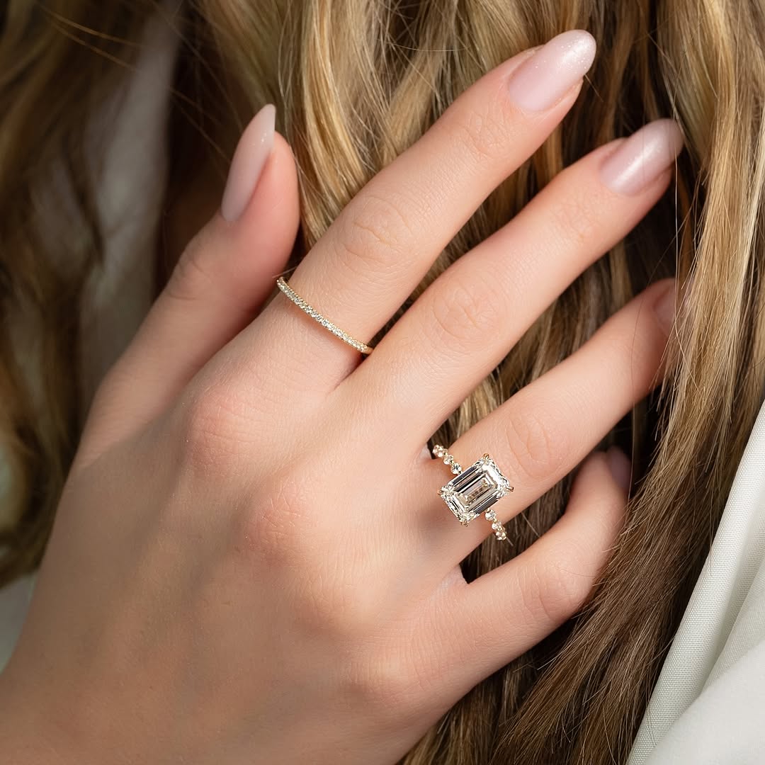 4.0CT Emerald Cut Diamond Pave Setting Lab Grown Engagement Ring
