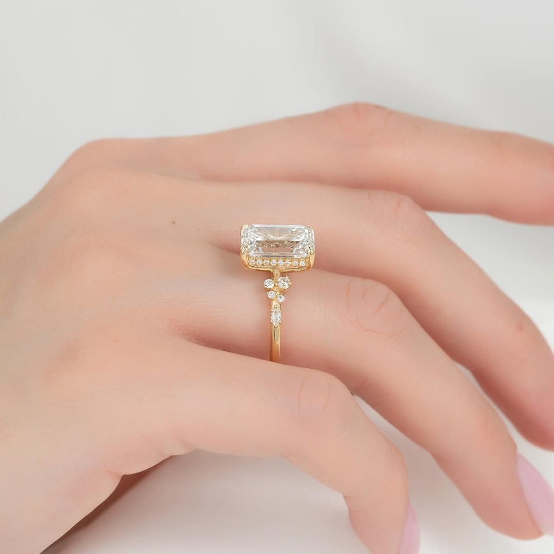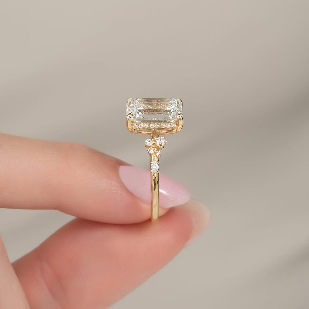 ✦A striking 4.50CT emerald cut lab grown diamond takes center stage in this cluster engagement ring, surrounded by sparkling accent stones that amplify its brilliance. The cluster design enhances the diamond’s presence while adding a luxurious, sophisticated touch. Crafted with ethically sourced lab grown diamonds, it offers sustainable elegance without compromise. Perfect for those who love bold sparkle paired with timeless style.