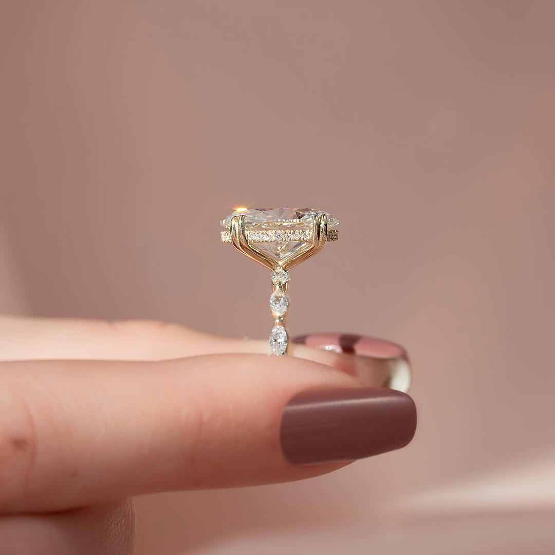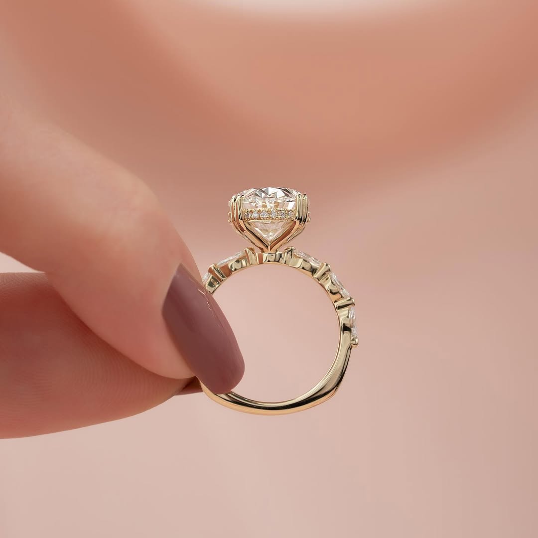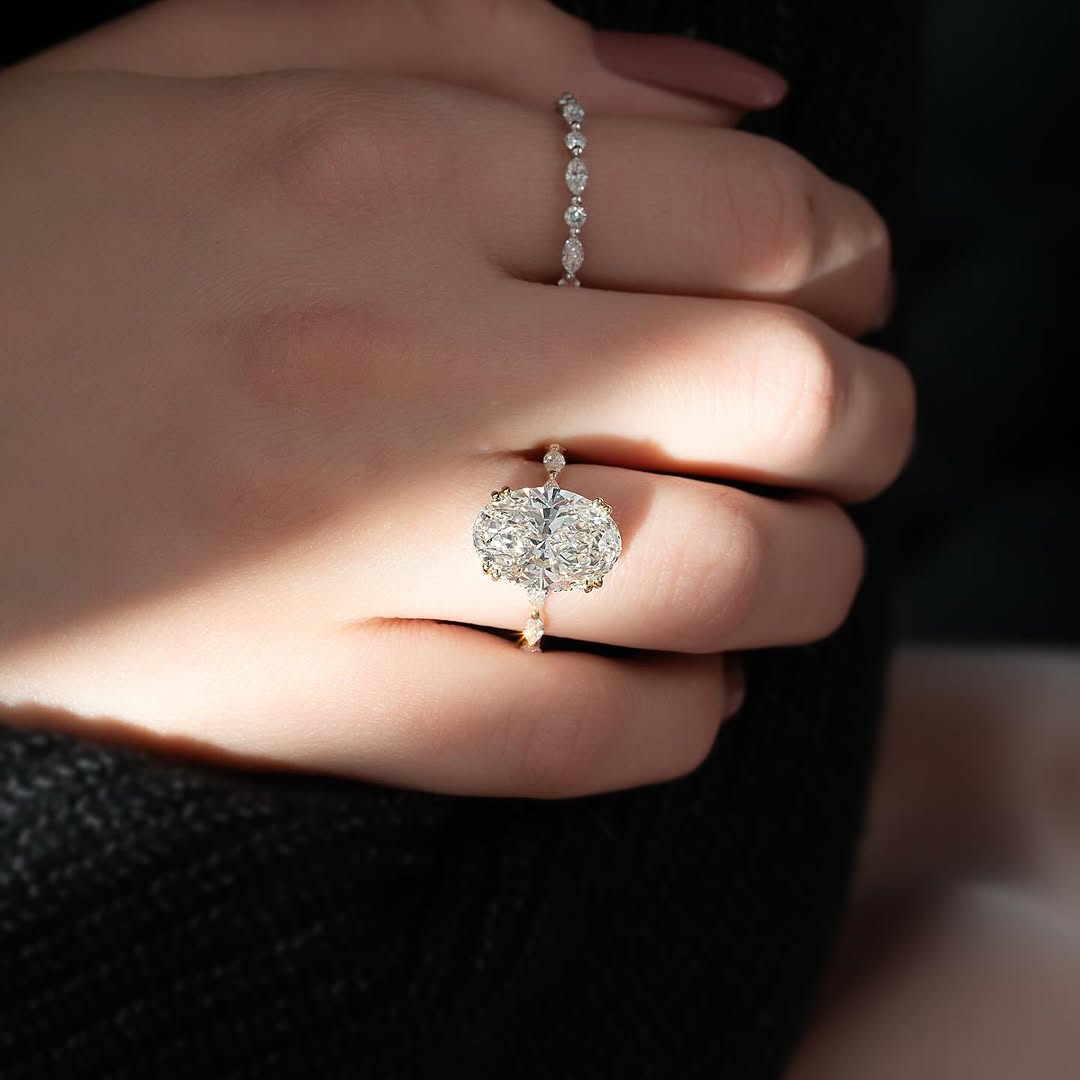 ✦A magnificent 5.0CT oval cut lab grown diamond shines at the center of this hidden halo pavé setting engagement ring, radiating exceptional brilliance and elegance. The concealed halo and pavé-set band enhance sparkle while maintaining a sleek, refined silhouette. Crafted with ethically sourced lab grown diamonds, it offers sustainable luxury with timeless sophistication. Perfect for those who love bold, statement-making elegance with modern refinement.
