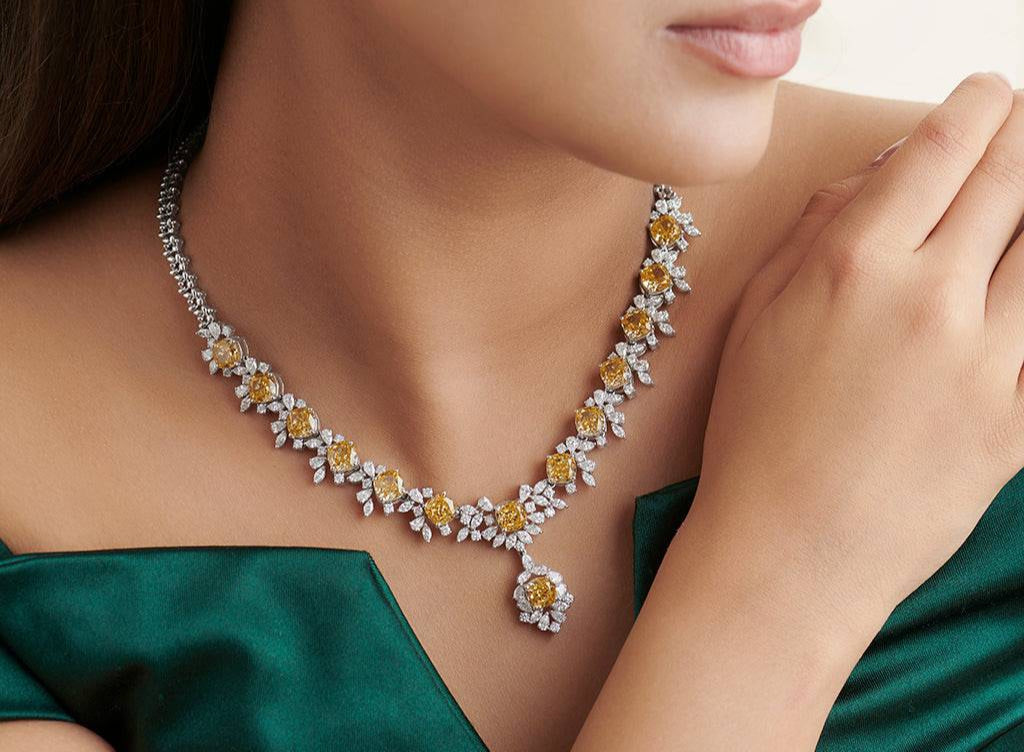 Cushion Cut Yellow Moissanite Cluster Diamond Timeless Wedding Necklace