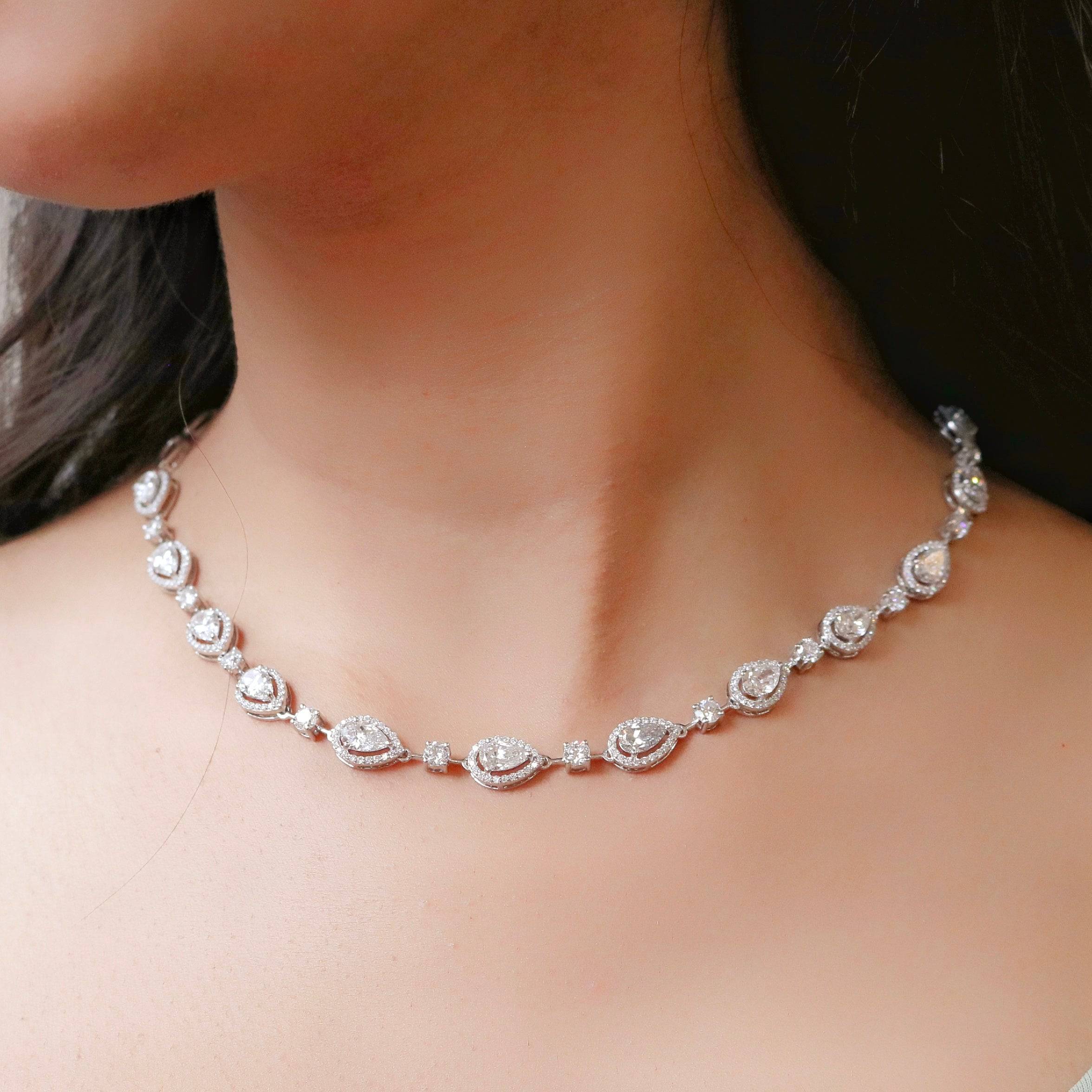 Pear cut Halo Set Choker Style Diamond Wedding Necklace