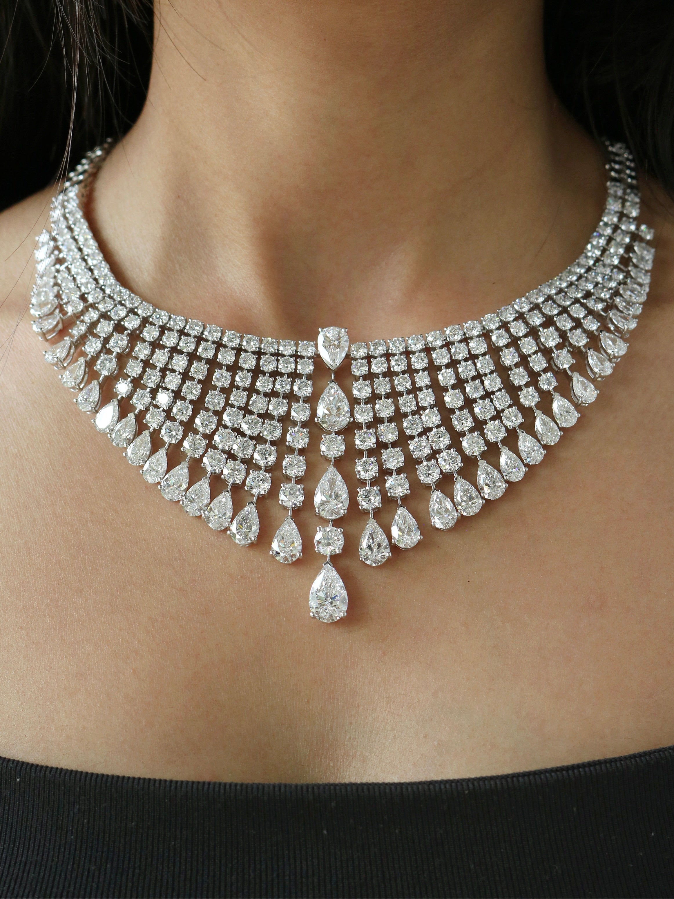 Pear & Round Diamond Luxurious Wedding Necklace