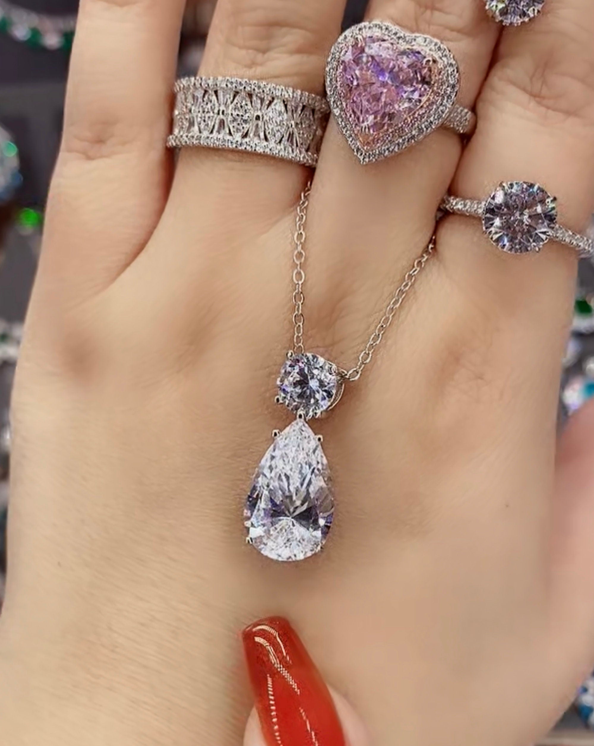 ✥The 12Ct Round & Pear Moissanite Two Stone Diamond Necklace is a breathtaking piece designed to captivate. Featuring a stunning combination of a 6-carat round-cut moissanite and a 6-carat pear-cut moissanite, this necklace exudes elegance and sophistication. The brilliance of these moissanite stones is further enhanced by the surrounding white diamonds, adding sparkle and allure to the piece. The two-stone design symbolizes unity and togetherness, making this necklace a perfect gift for a loved one or a meaningful addition to your own jewelry collection. Crafted with precision and attention to detail, this necklace is sure to make a statement and turn heads wherever you go.