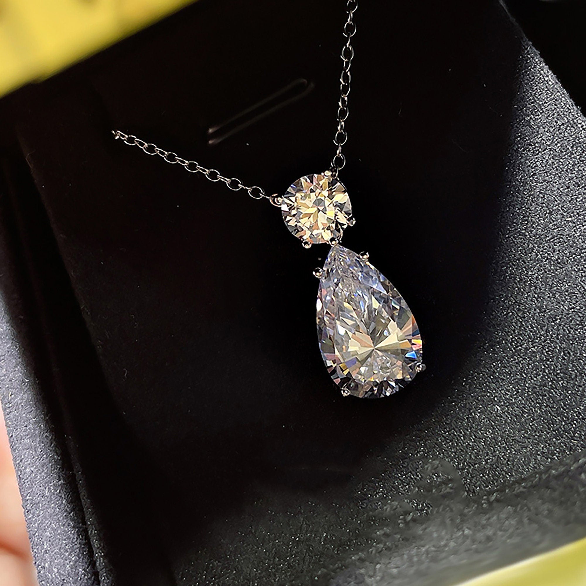 12Ct Round & Pear Moissanite Two Stone Diamond Necklace for Her