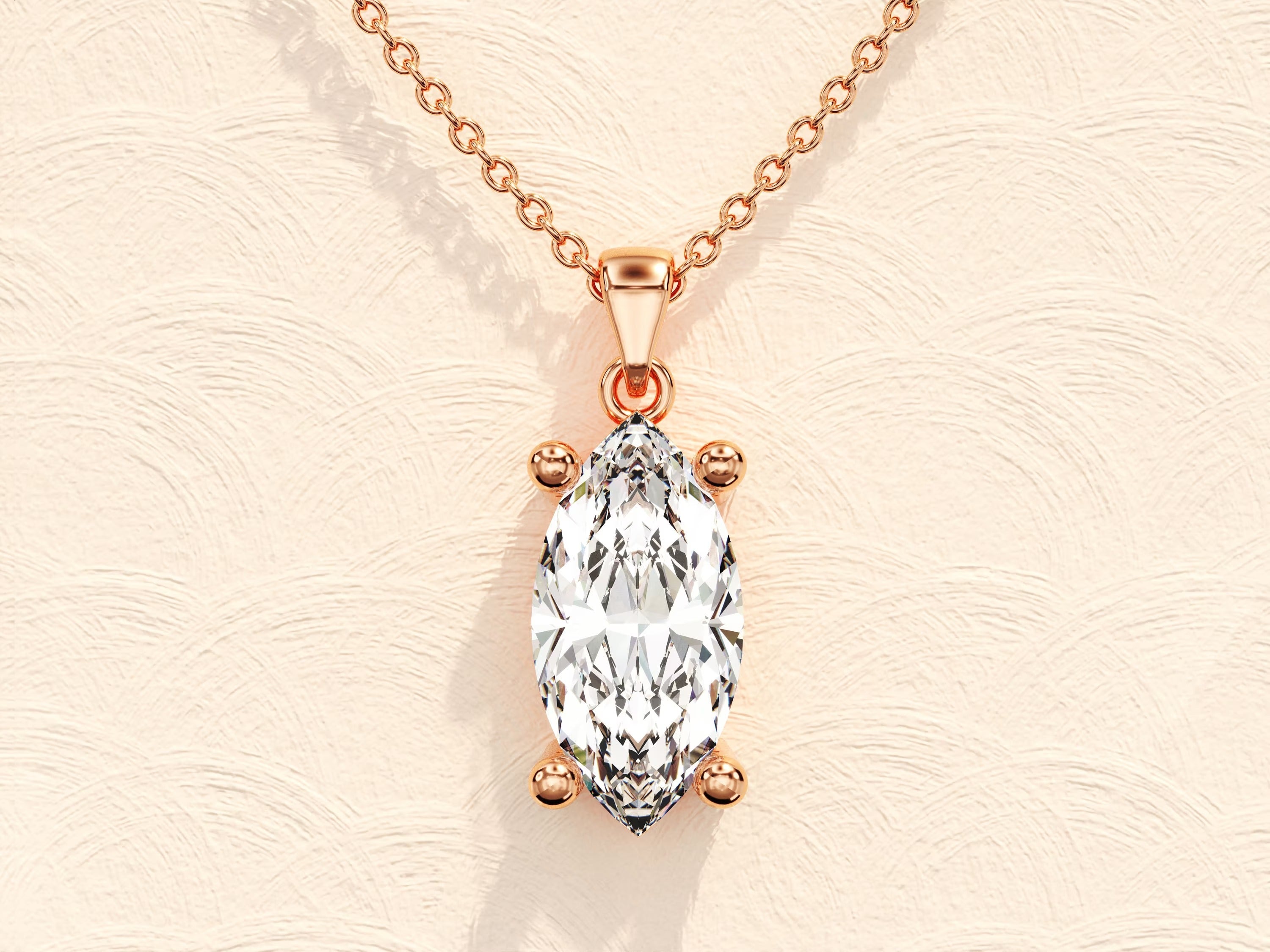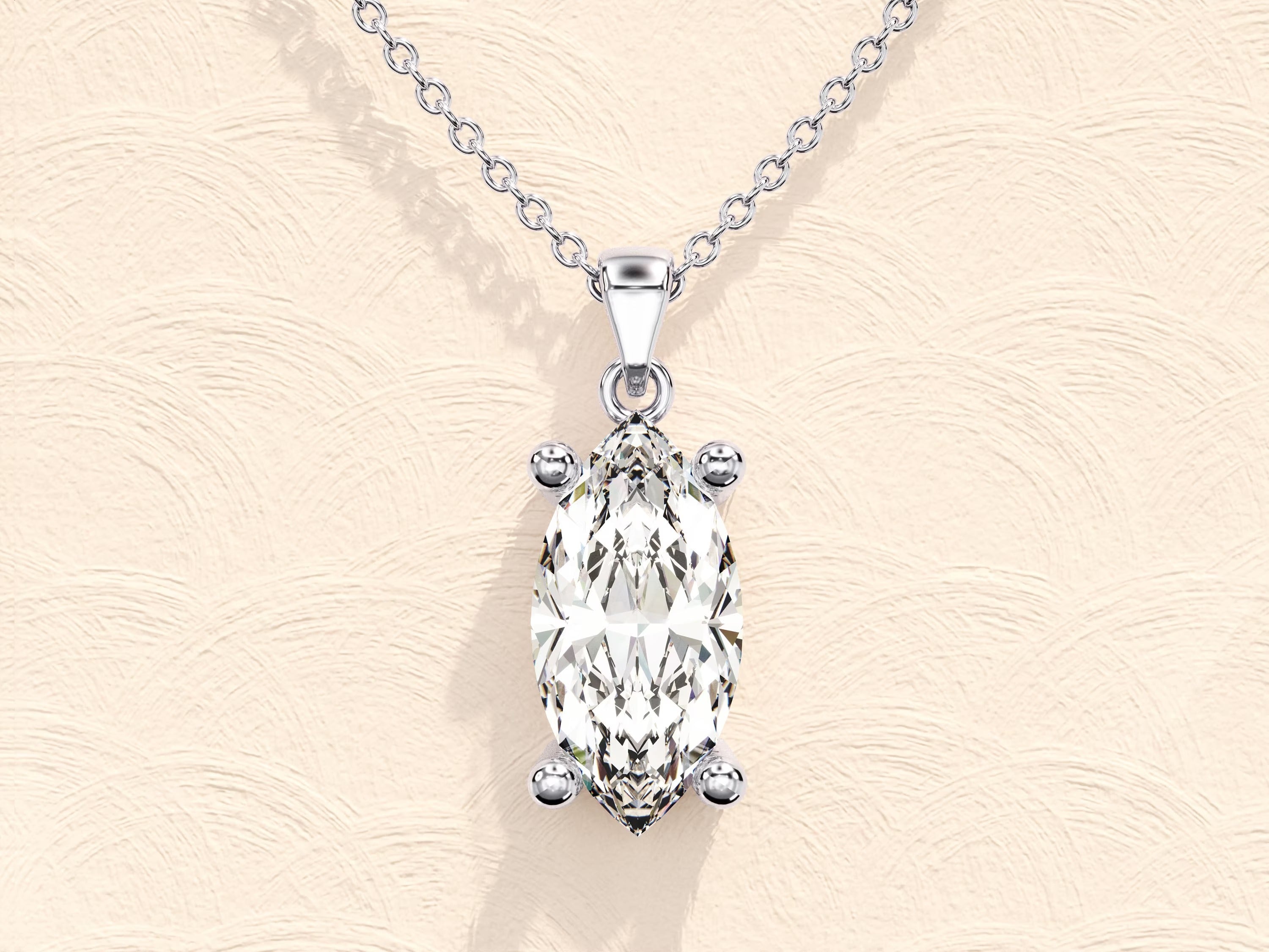 Marquise Cut Solitaire Moissanite Diamond Pendant Necklace