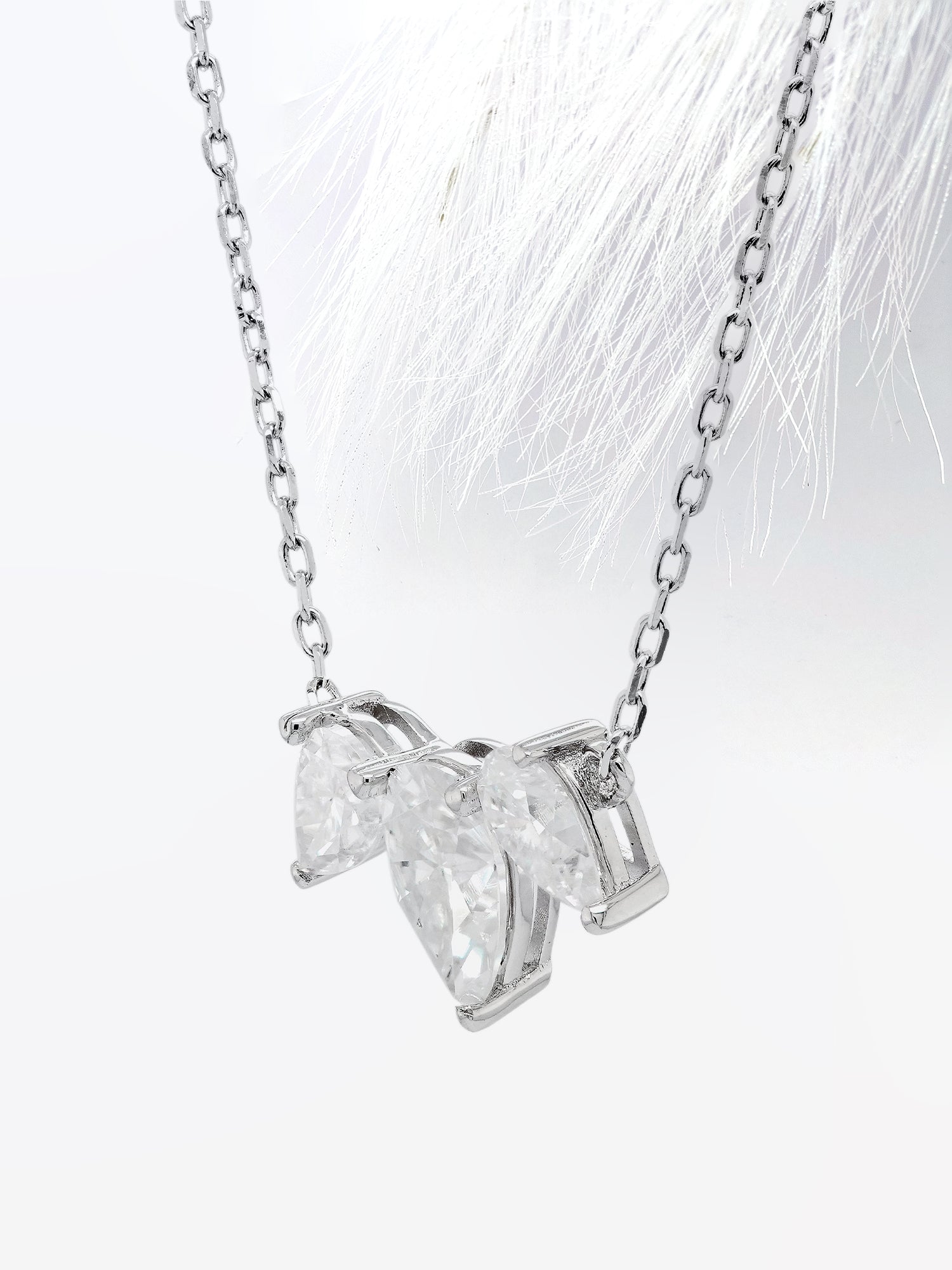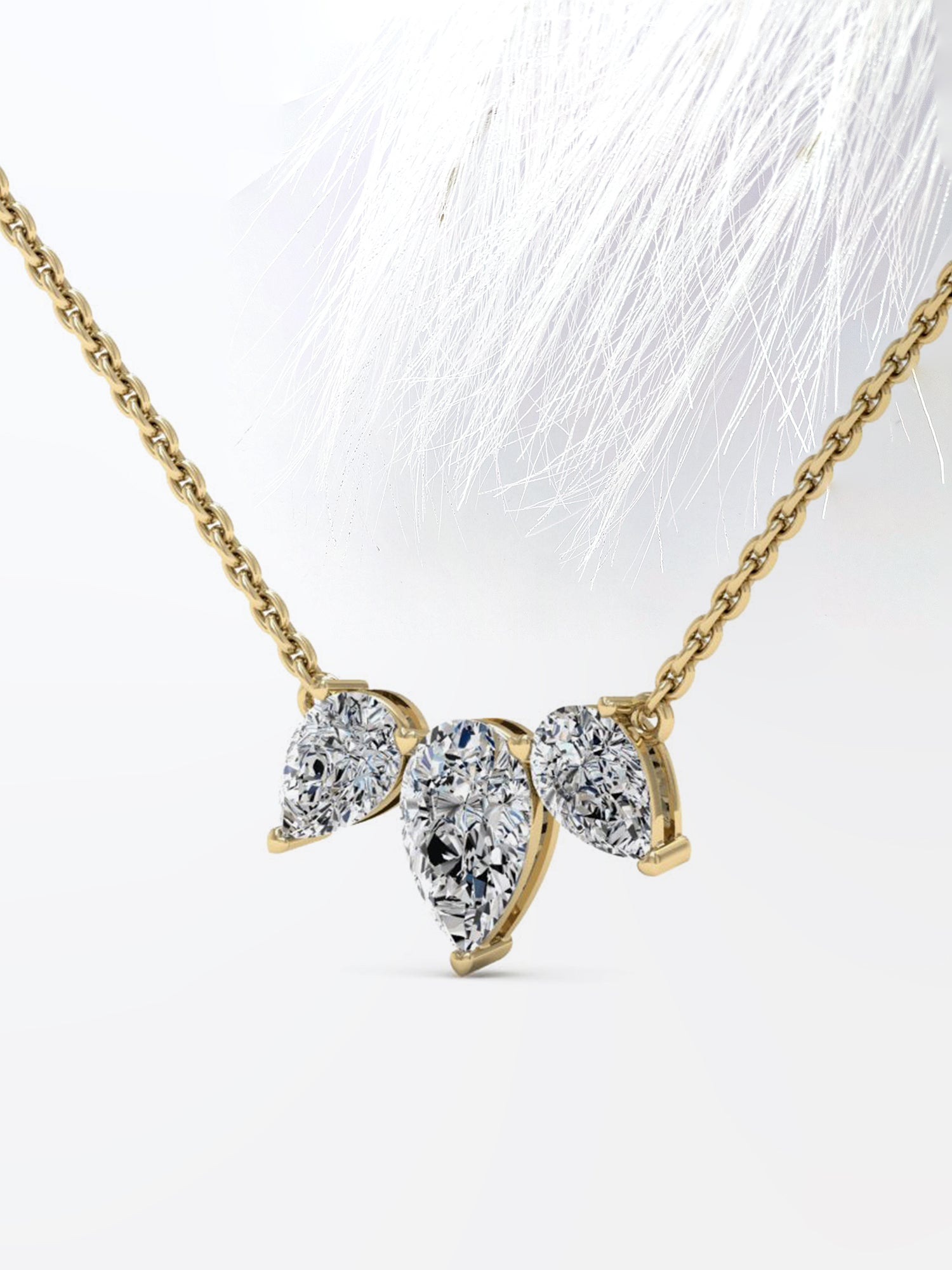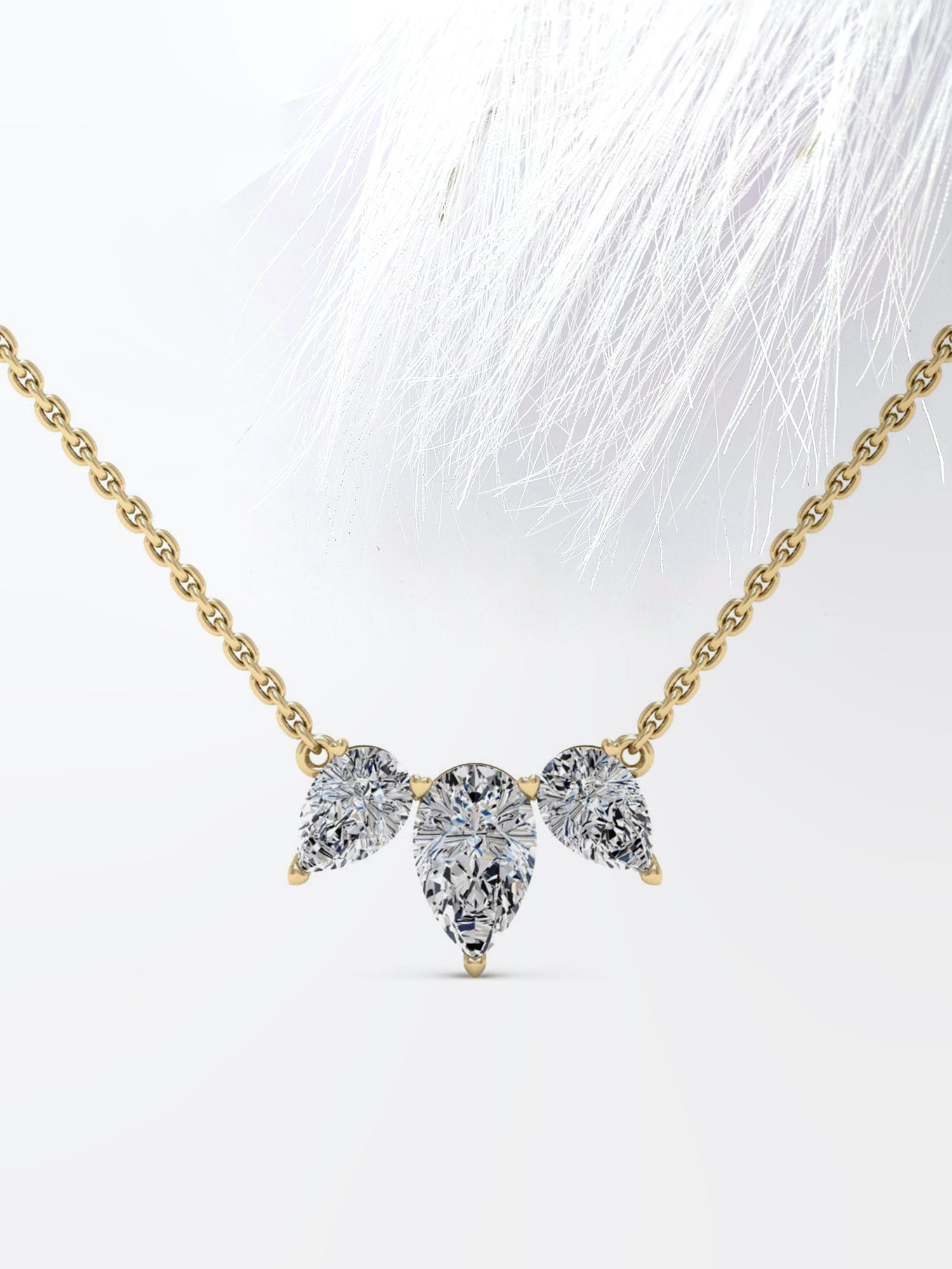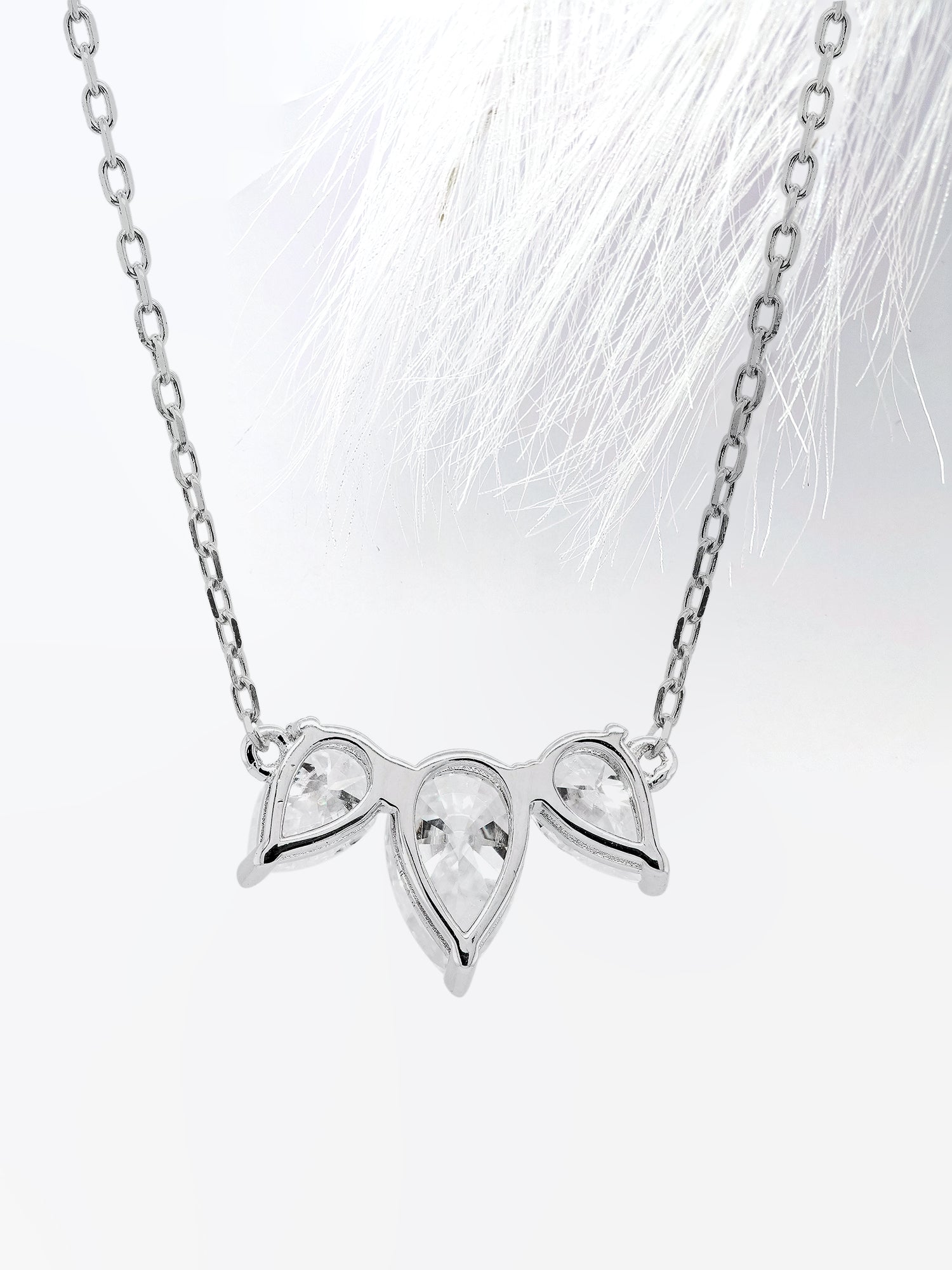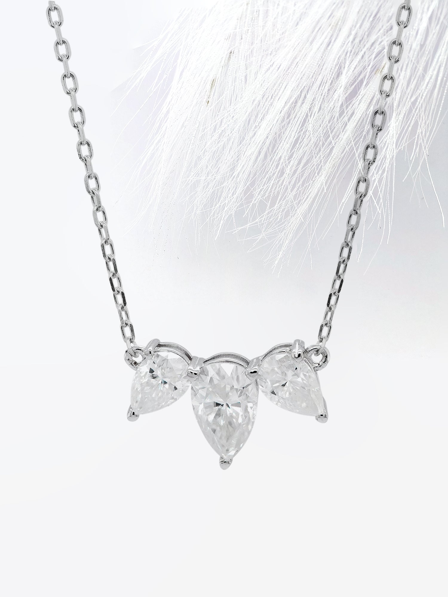 Pear Cut Moissanite Diamond Three Stone Necklace for Women
