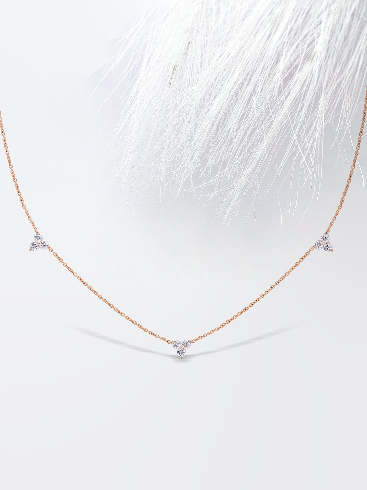 Round Cut Moissanite Diamond Three Stone Necklace for Women
