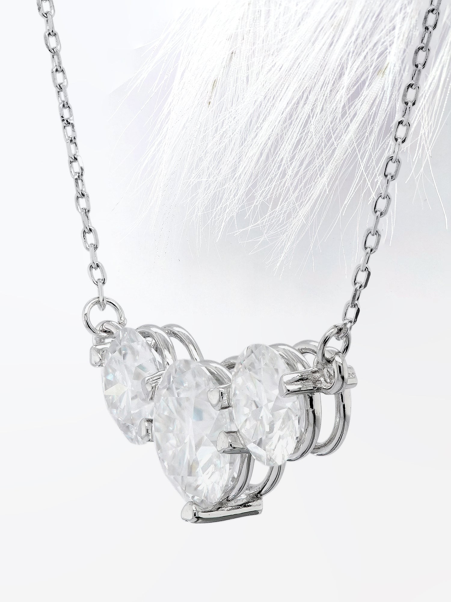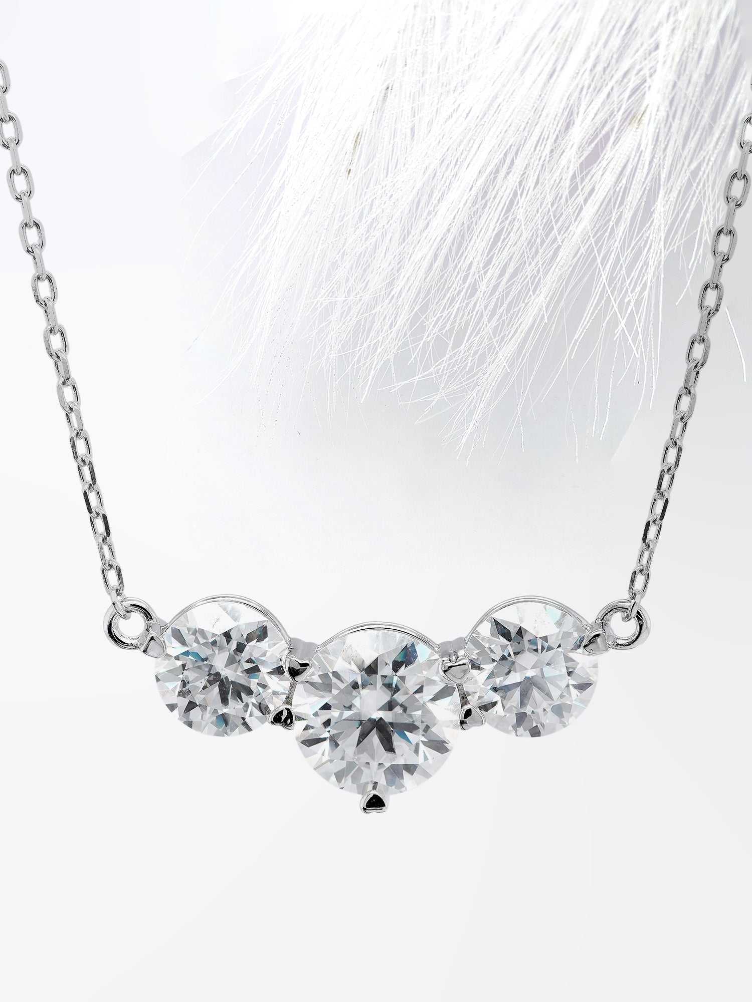 Round Cut Three Stone Diamond Moissanite Necklace for Her