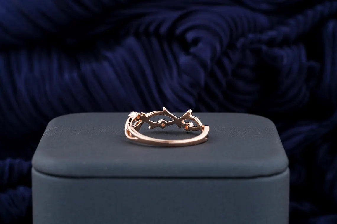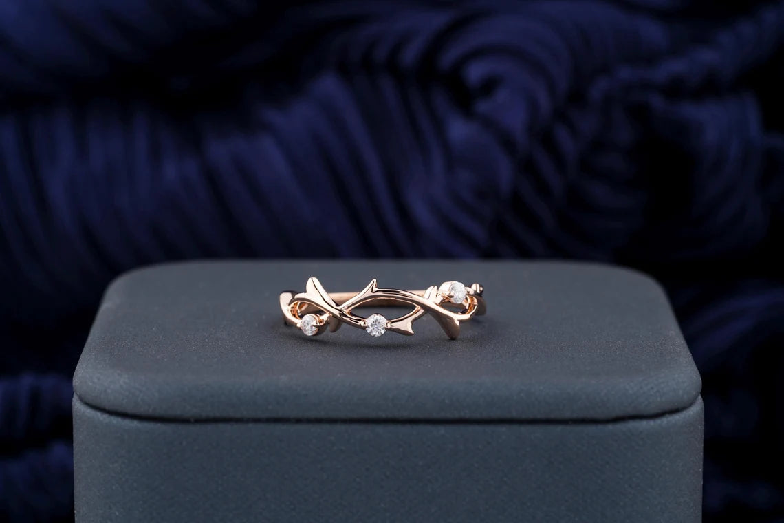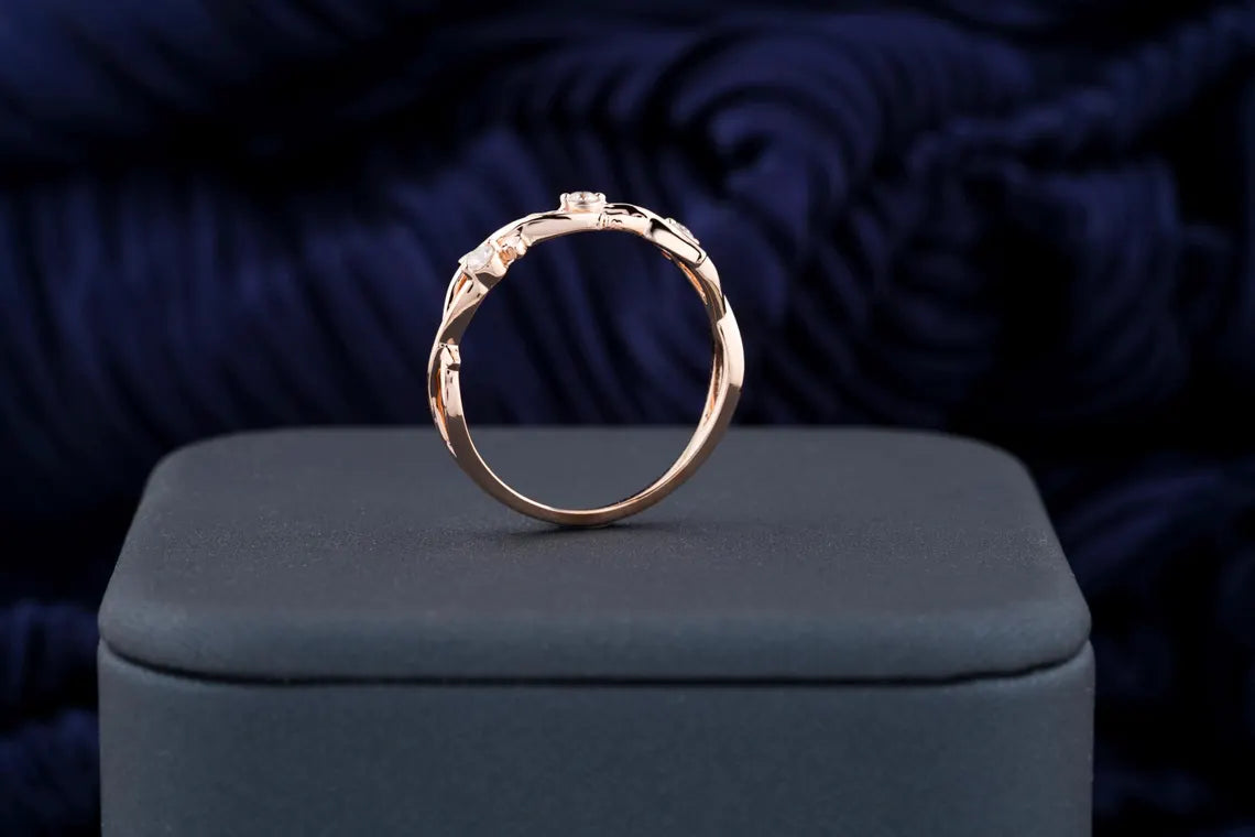 0.11 TCW Round Diamond Nature Inspired Twig Moissanite Wedding Band