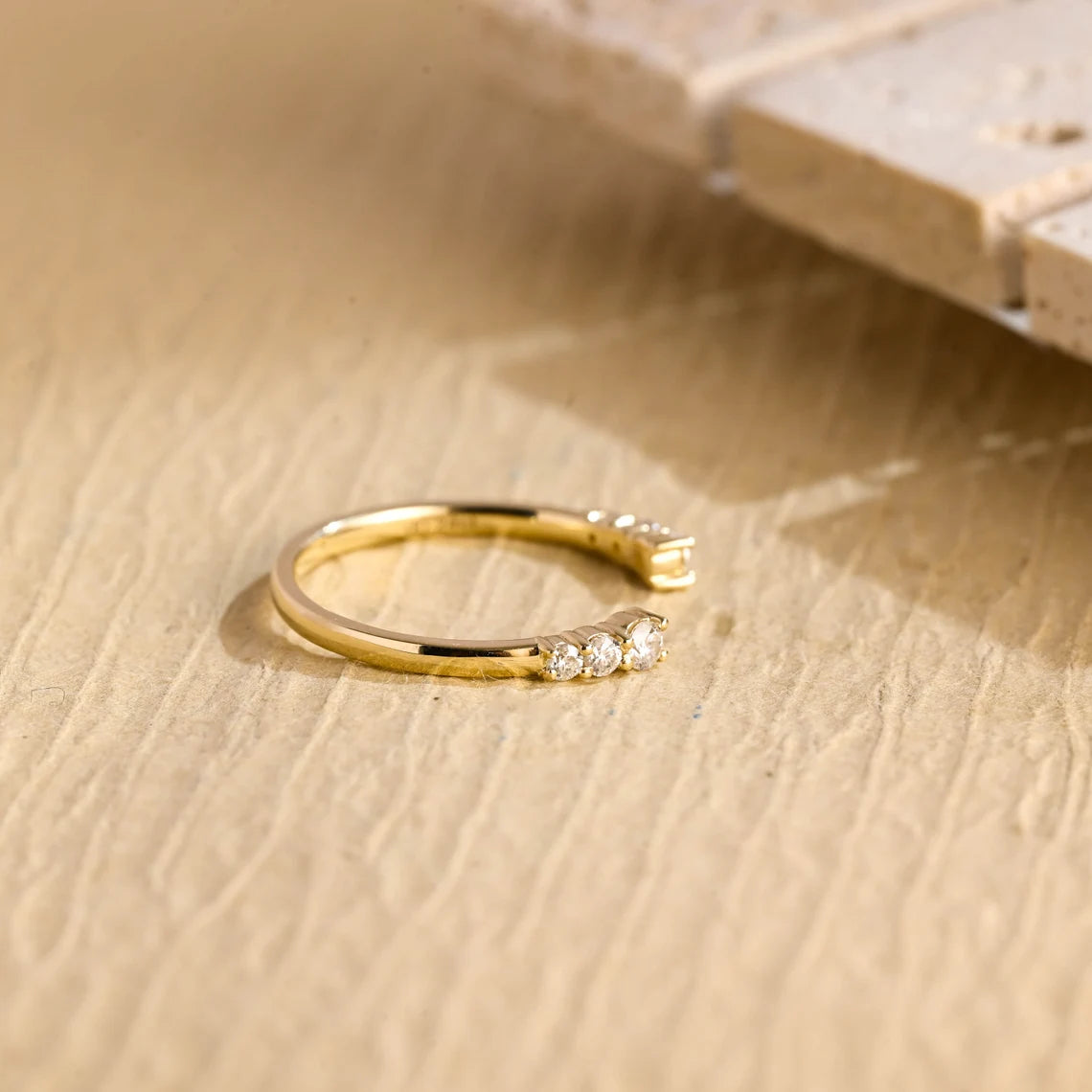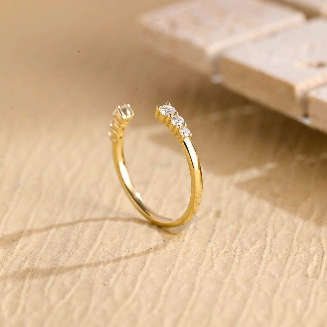 The 0.15TCW Round Brilliant Cut Open Cuff Minimalist Moissanite Wedding Band offers a sleek and contemporary design for those who appreciate understated elegance. Its open cuff style features delicate round brilliant cut moissanite stones, adding a subtle sparkle without overwhelming the minimalist aesthetic. Perfect for stacking or wearing alone, this band embodies simplicity and sophistication in every detail.