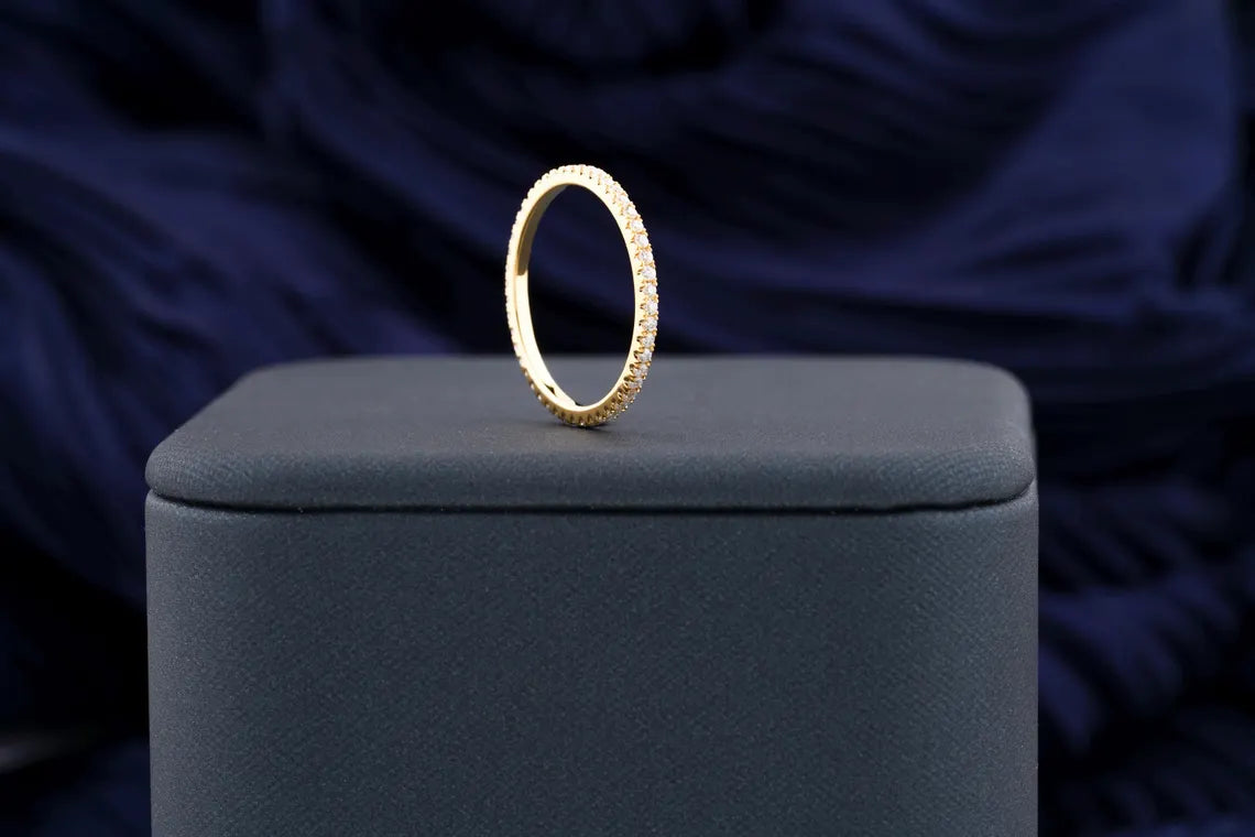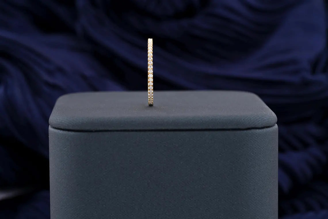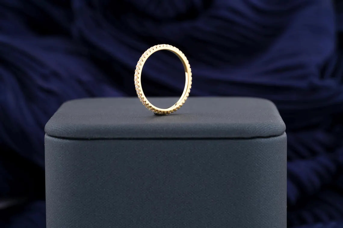 ✧ The 0.30 TCW Round Cut Pave Set Full Eternity Moissanite Wedding Band is a stunning piece that epitomizes timeless elegance. This exquisite band features a continuous row of sparkling round-cut moissanite stones, intricately set in a pave design to enhance their brilliance. The full eternity style symbolizes endless love and commitment, making it a perfect choice for a wedding band or a special anniversary gift. Crafted with high-quality materials, this ring not only offers durability but also provides a luxurious look that complements any engagement ring beautifully, making it an ideal accessory for any occasion.