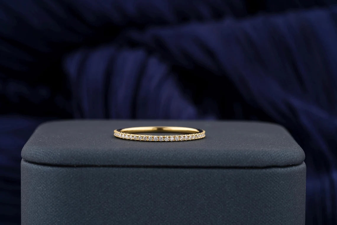 ✧This exquisite 0.30 TCW Round Diamond Pave Set Full Eternity Moissanite Wedding Band showcases a timeless design that symbolizes everlasting love. Featuring a continuous row of shimmering round diamonds, each expertly set in a delicate pave setting, this band offers a stunning sparkle from every angle. The full eternity style ensures that the brilliance encircles the entire band, making it a perfect complement to any engagement ring or as a standalone piece. Crafted with high-quality moissanite, this wedding band is a luxurious yet affordable alternative to traditional diamond bands. Ideal for those who cherish elegance and sophistication, this ring is a beautiful reminder of your enduring commitment.