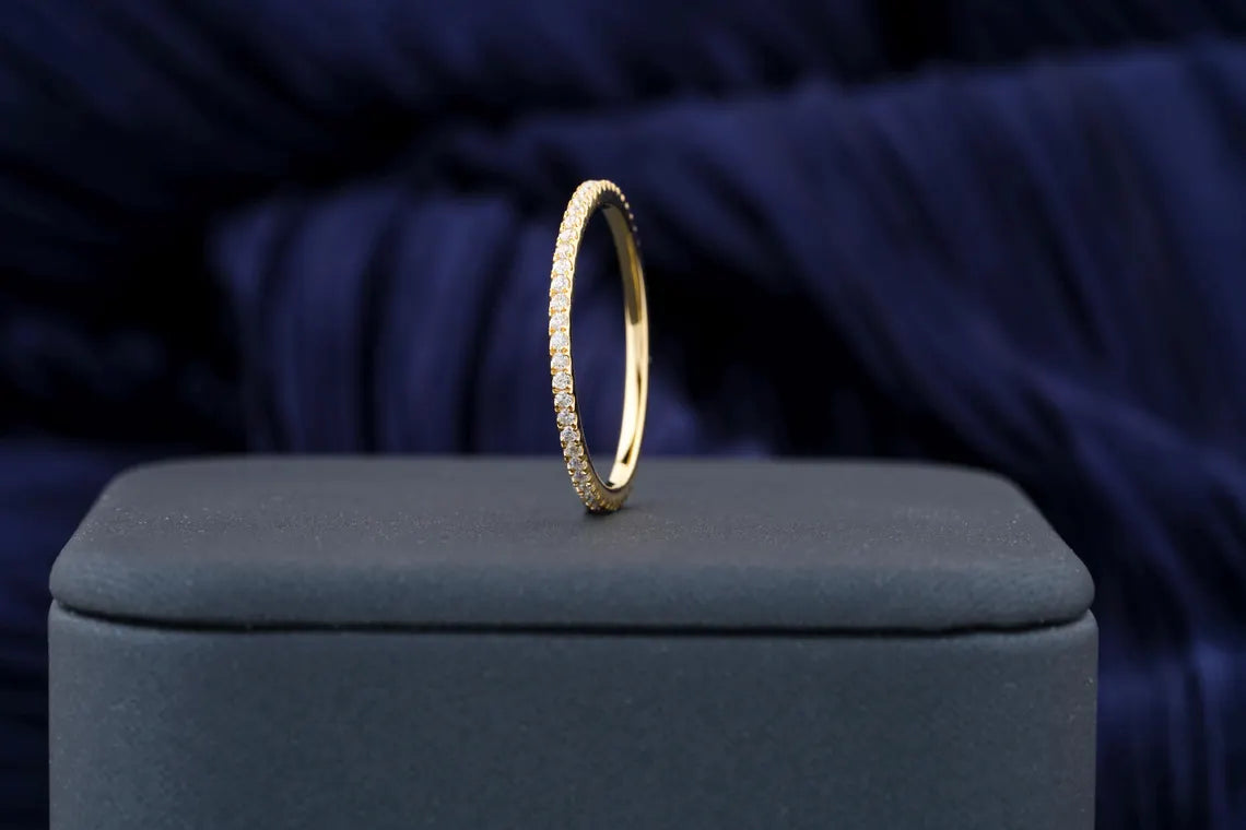 0.30 TCW Round Diamond Pave Set Full Eternity Moissanite Wedding Band