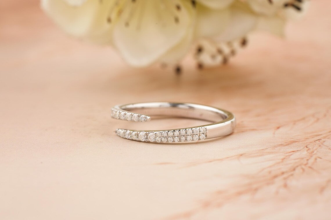 0.35TCW Round Diamond Open Cuff Moissanite Wedding Band