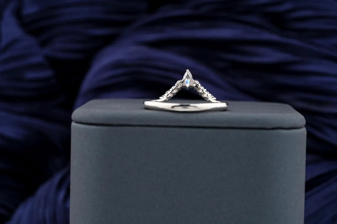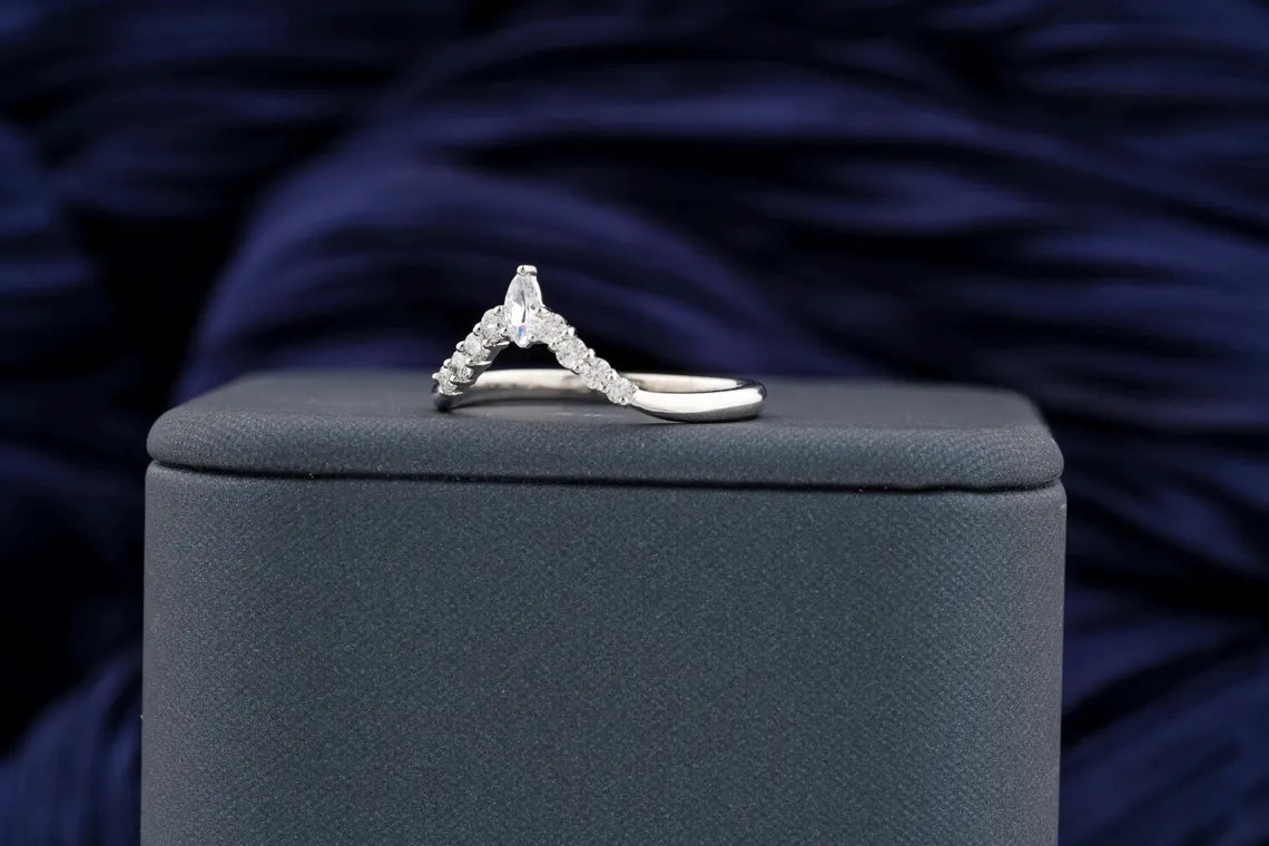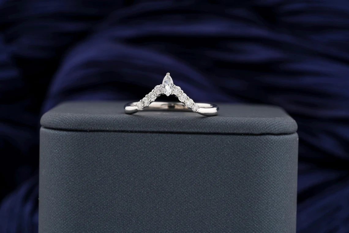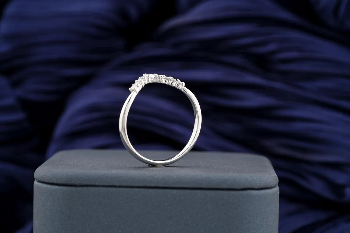 0.40 TCW Round & Marquise Brilliant Diamond Curved Style Moissanite Wedding Band