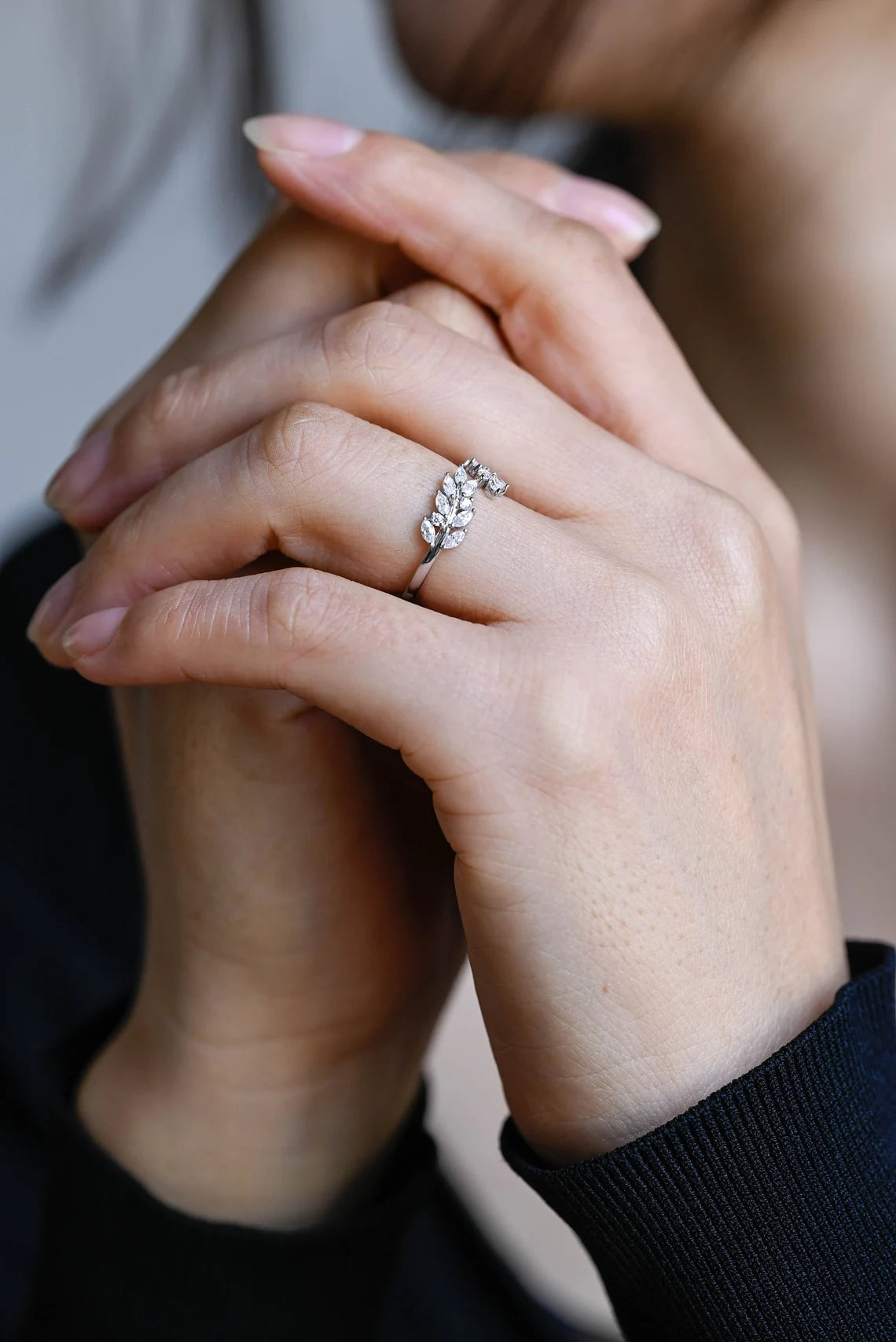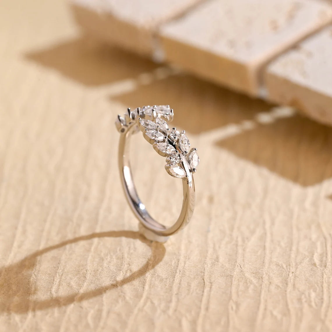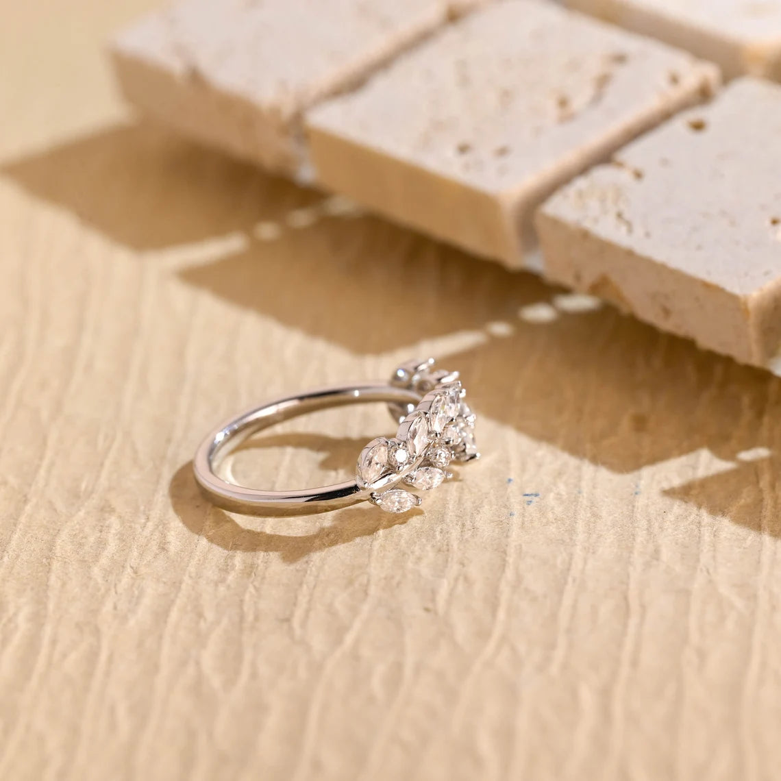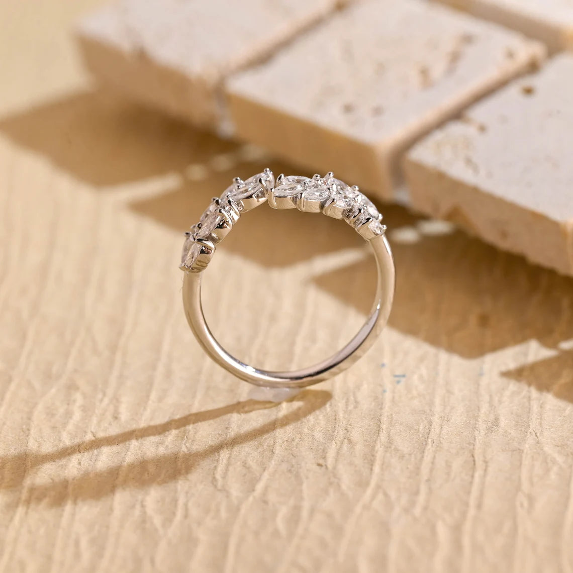 0.60TCW Marquise Cut Cluster Diamond Moissanite Wedding Band