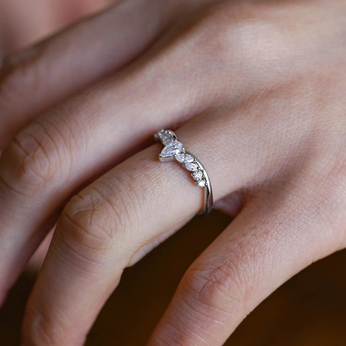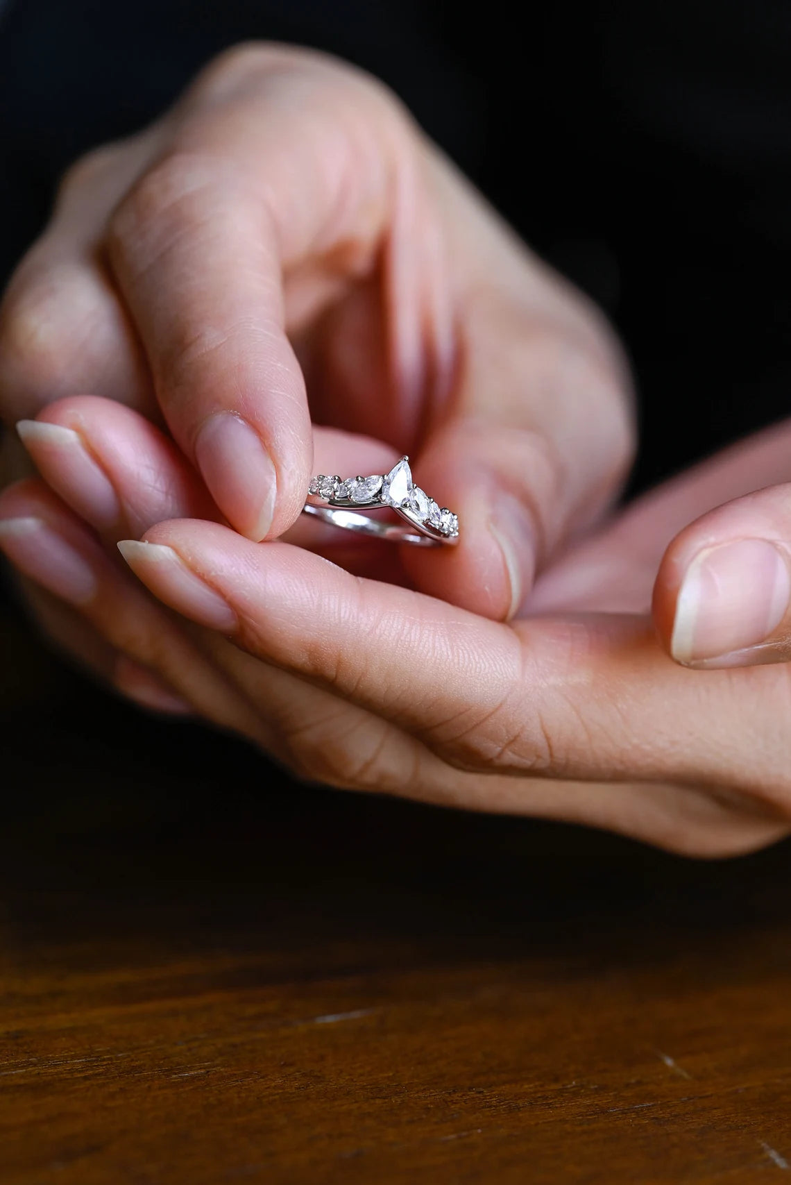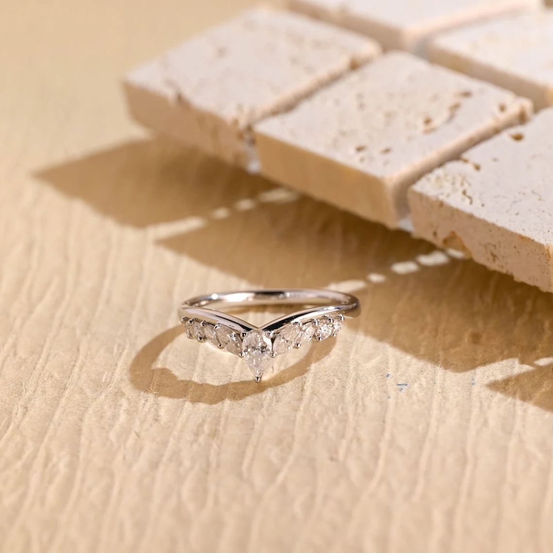 0.60TCW Marquise & Pear Cut Curved Moissanite Wedding Band