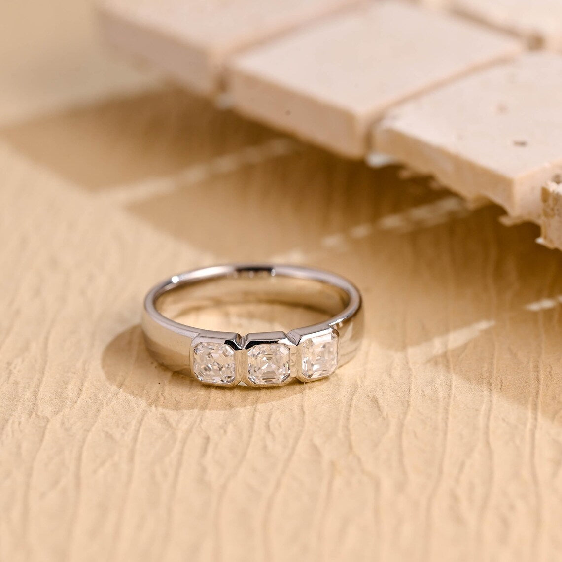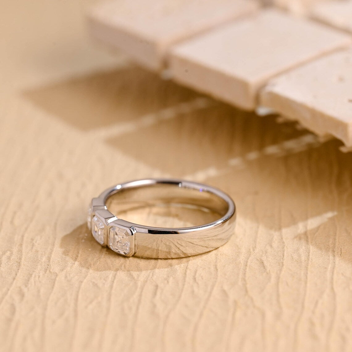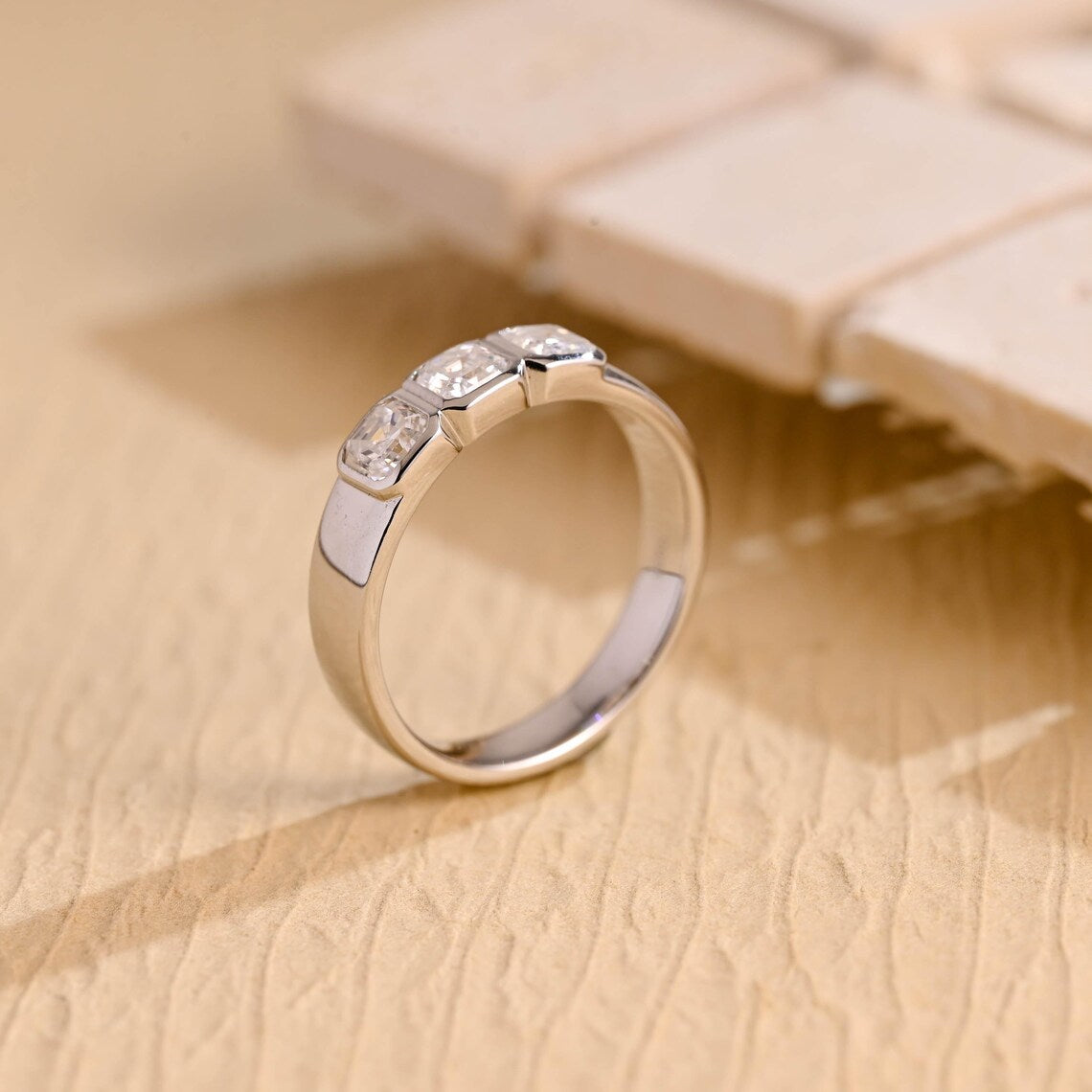 1.17TCW Asscher Cut Three Stone Moissanite Wedding Band