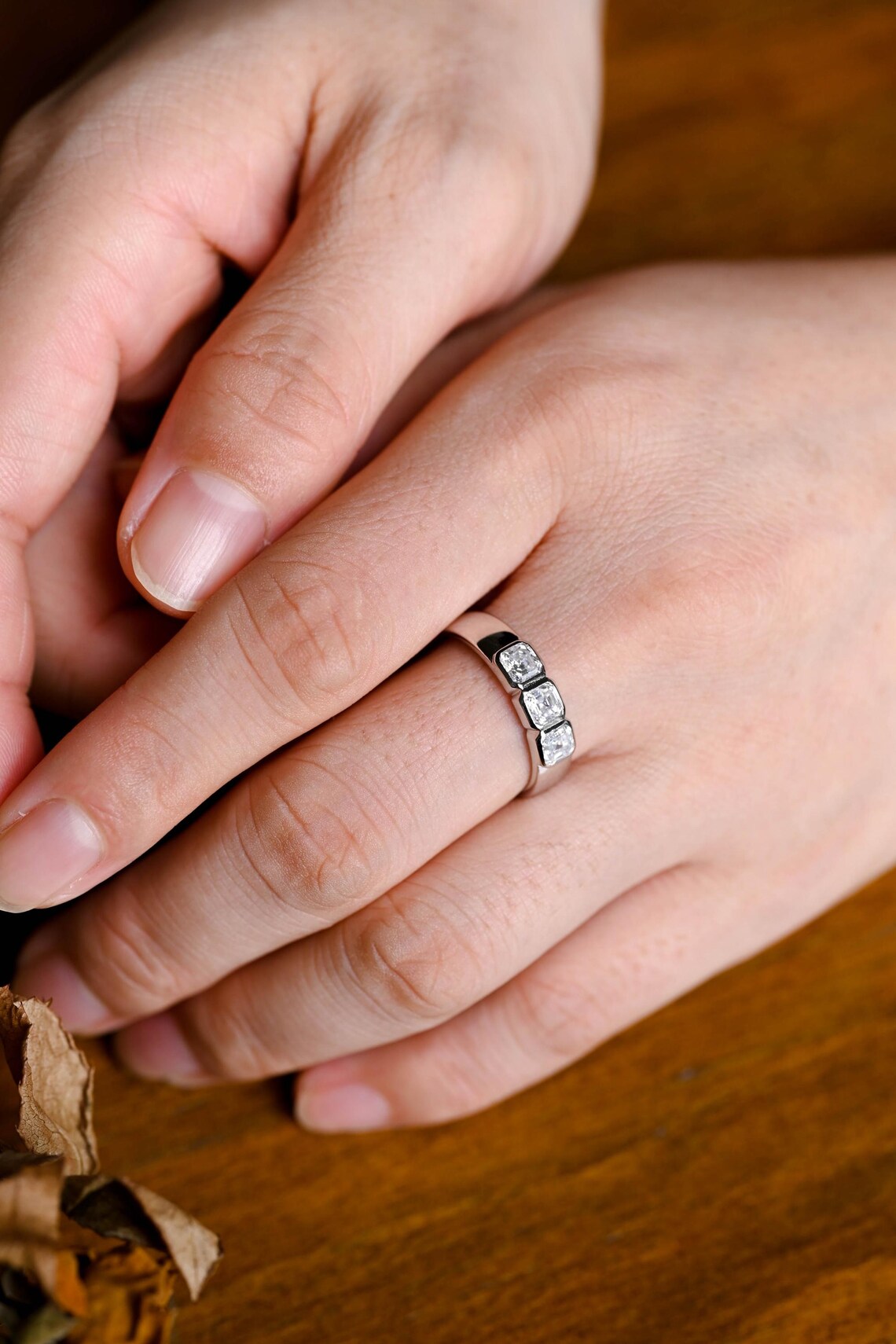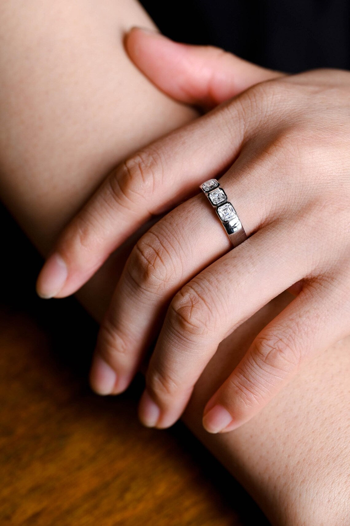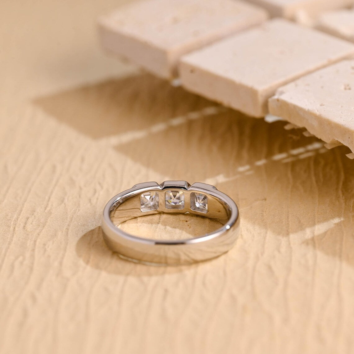 1.17TCW Asscher Cut Three Stone Moissanite Wedding Band