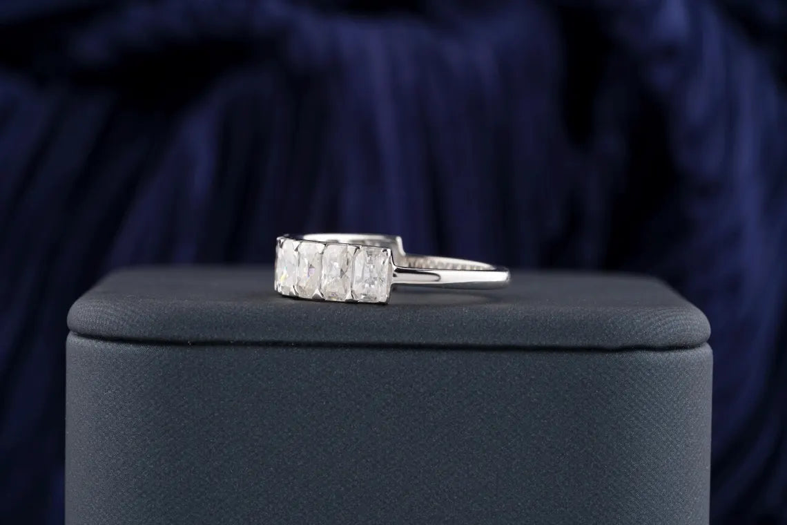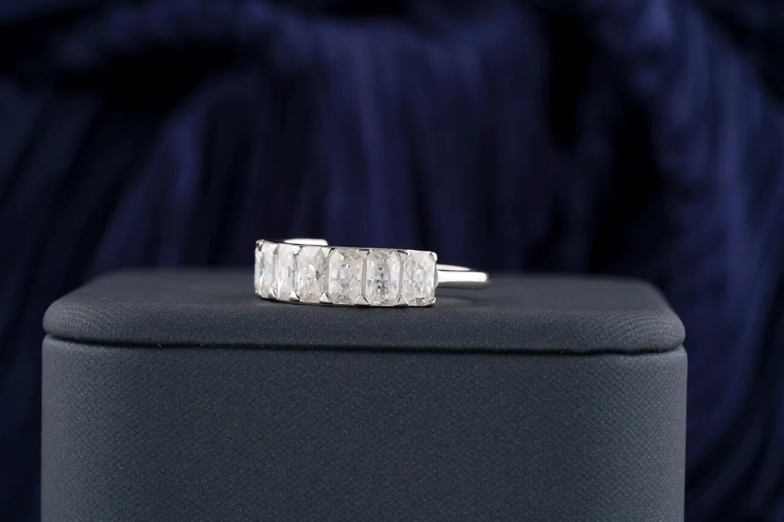1.50 TCW Radiant Cut Half Eternity Moissanite Wedding Band