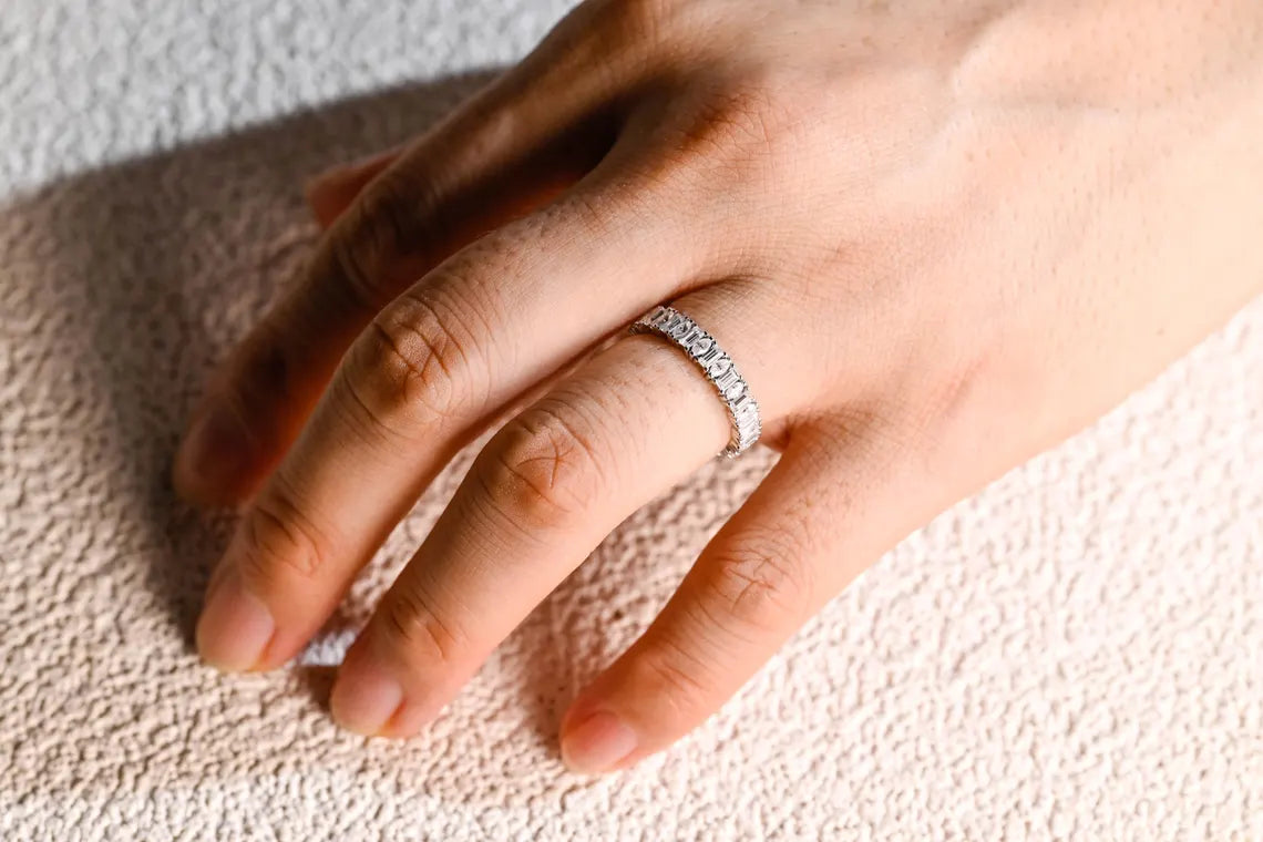 - Rings with full eternity stones cannot be resized due to their intricate design. For these rings, we recommend exchanging the ring for the correct size. Our customer service team is available to assist with this process.