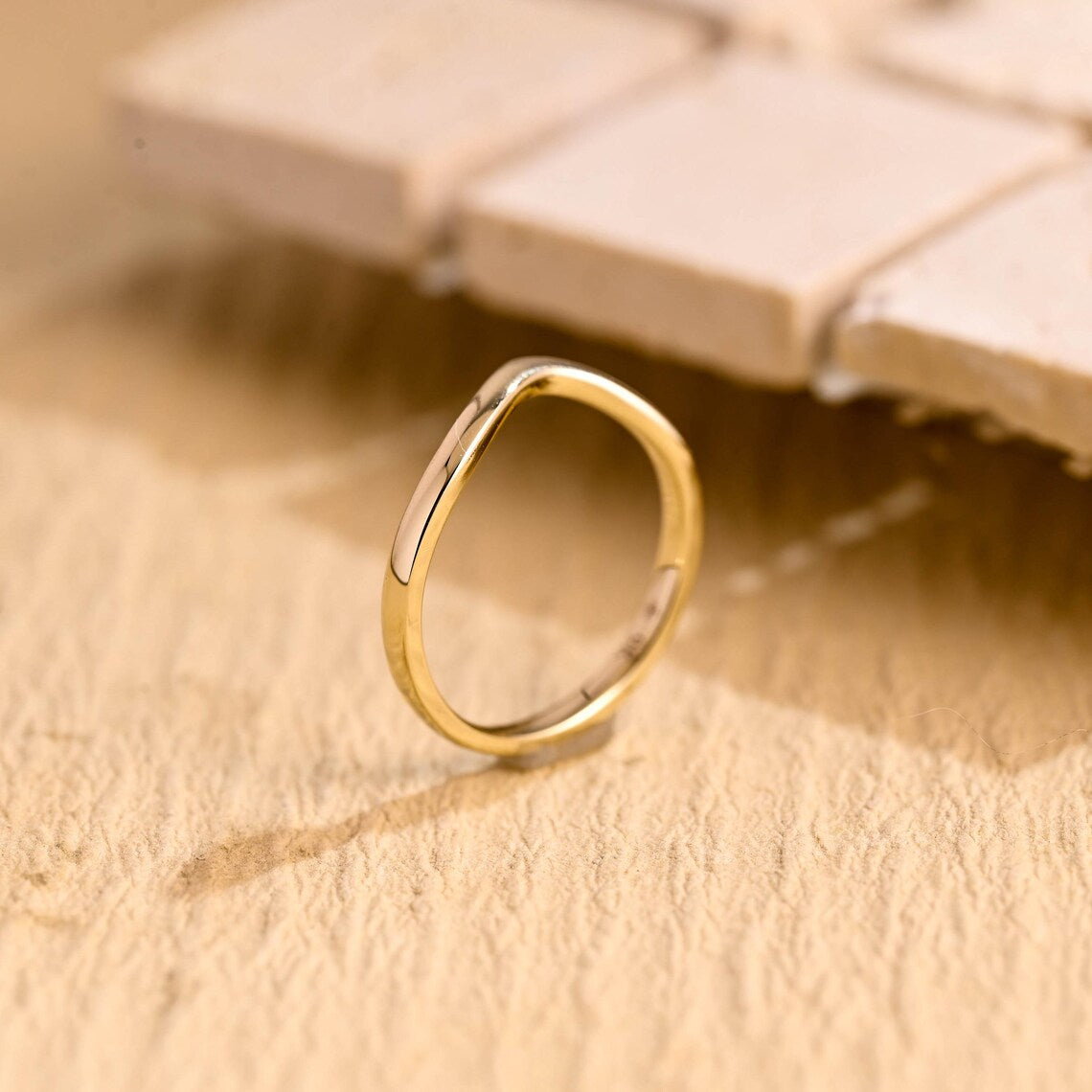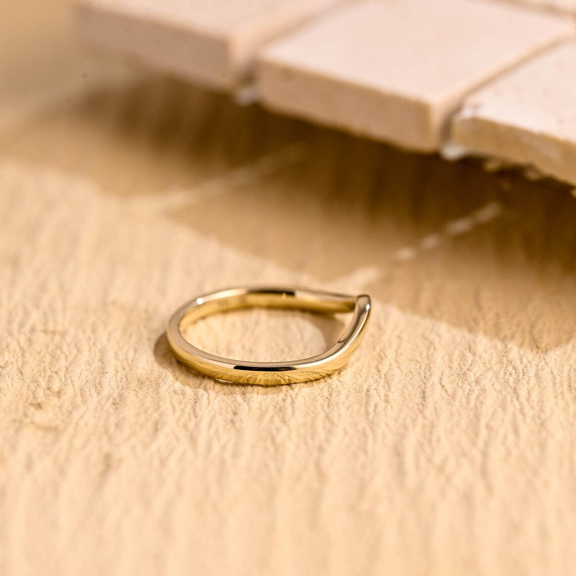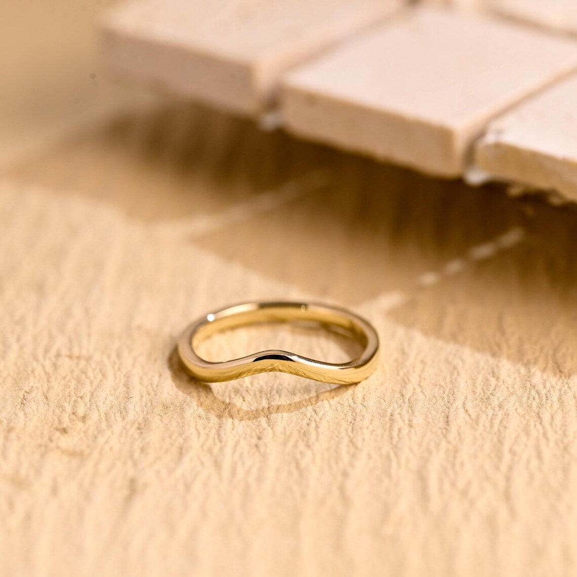 14K Solid Yellow Gold Plain Curved Wedding Band