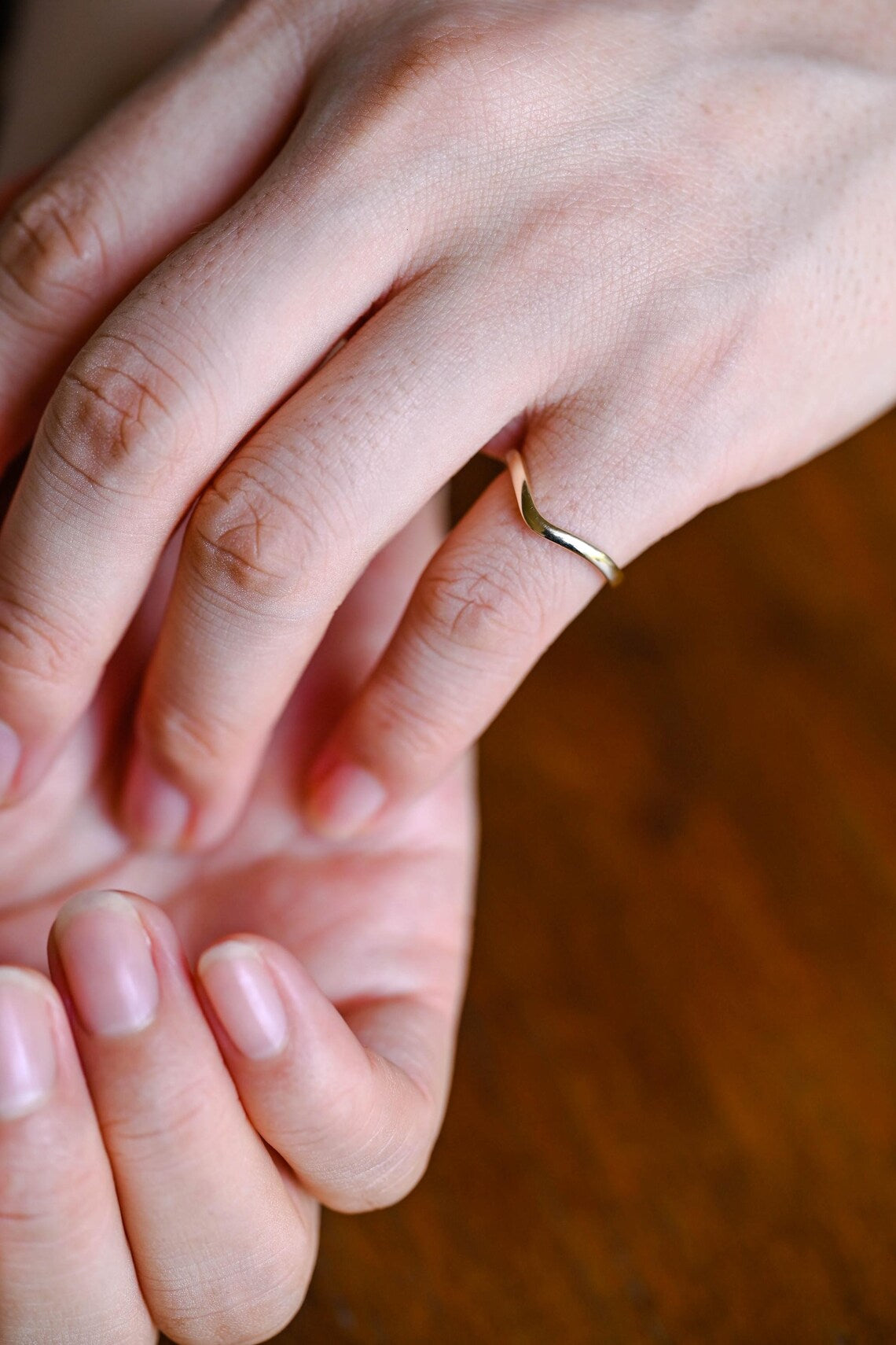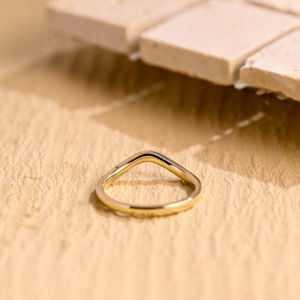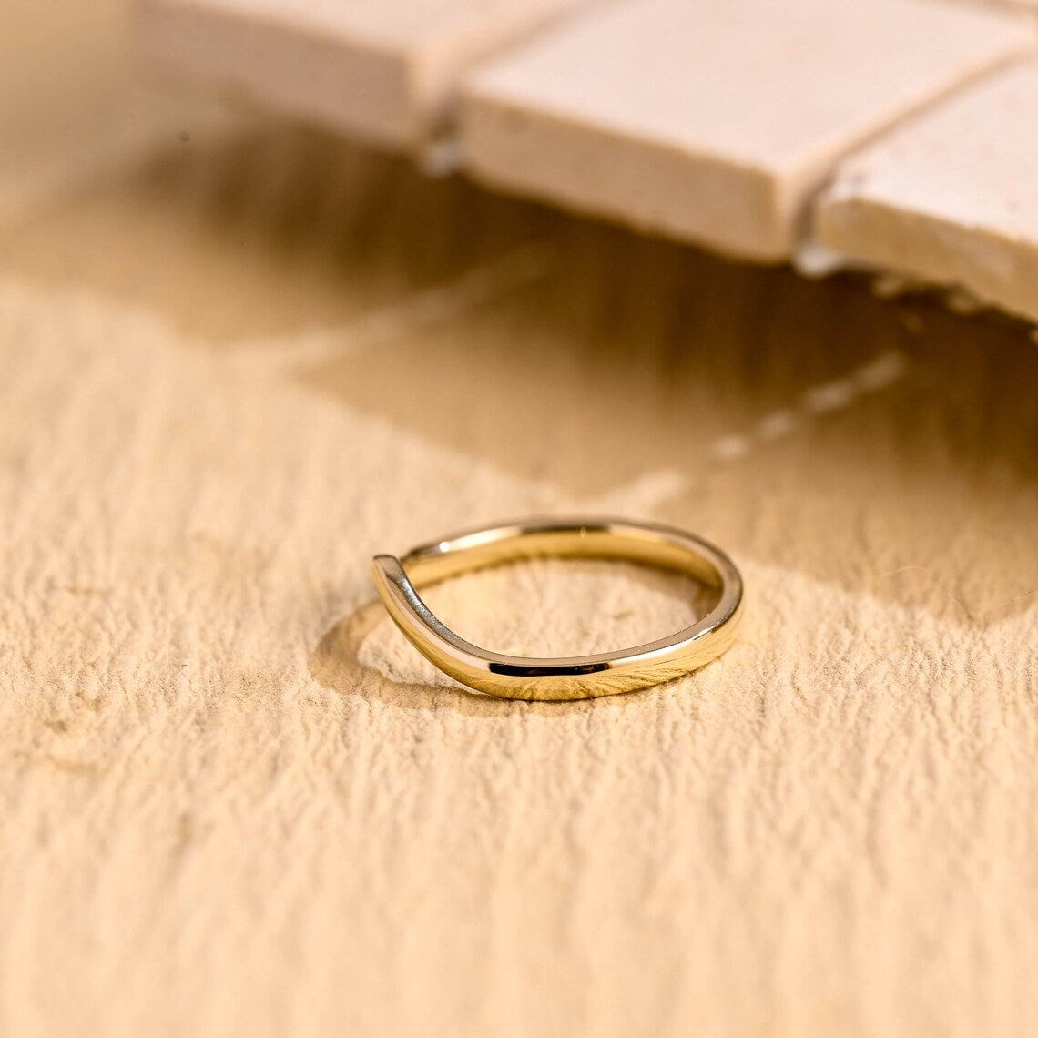 14K Solid Yellow Gold Plain Curved Wedding Band