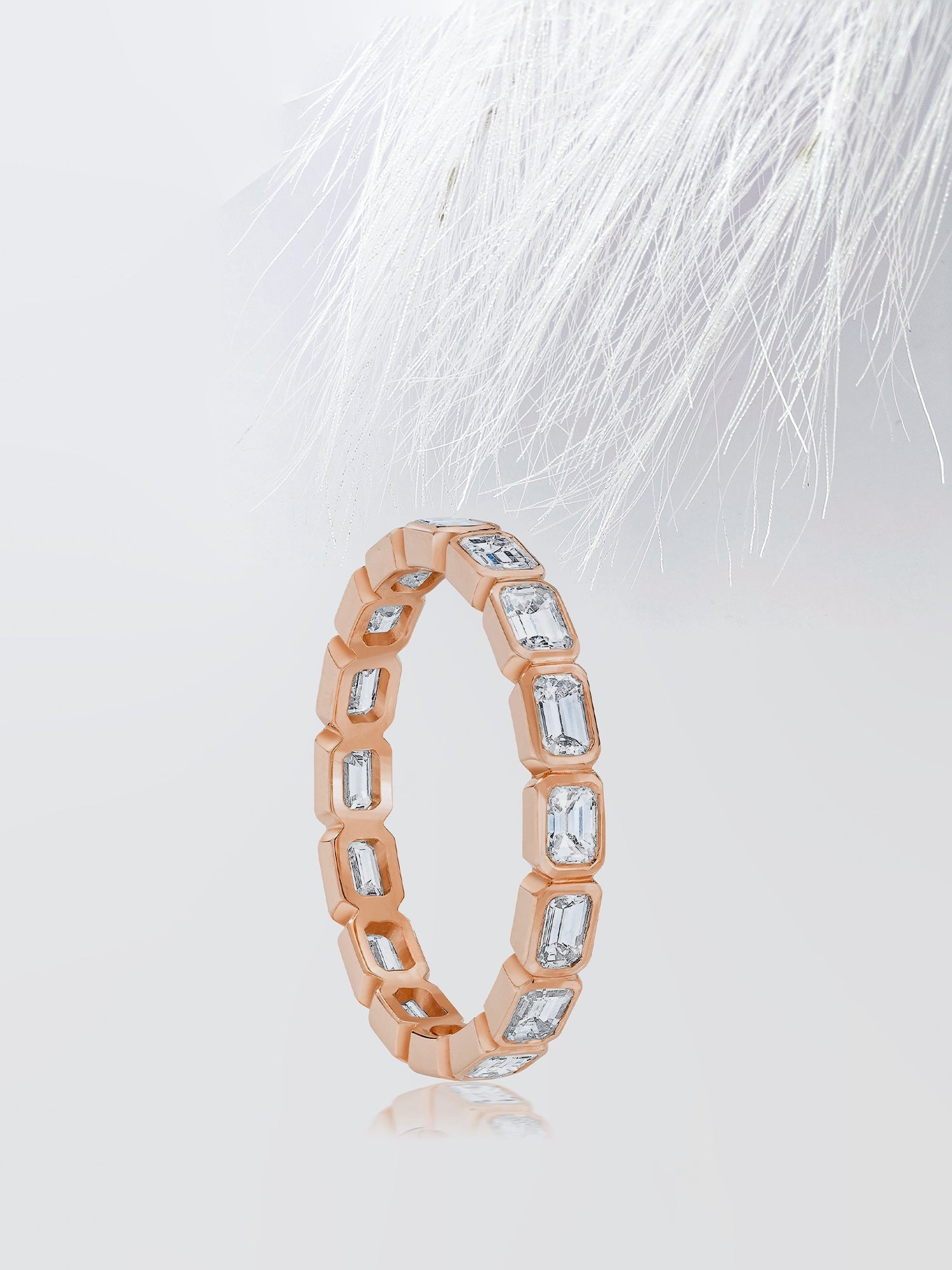 Bezel Set Emerald Cut Moissanite Eternity Diamond Wedding Band