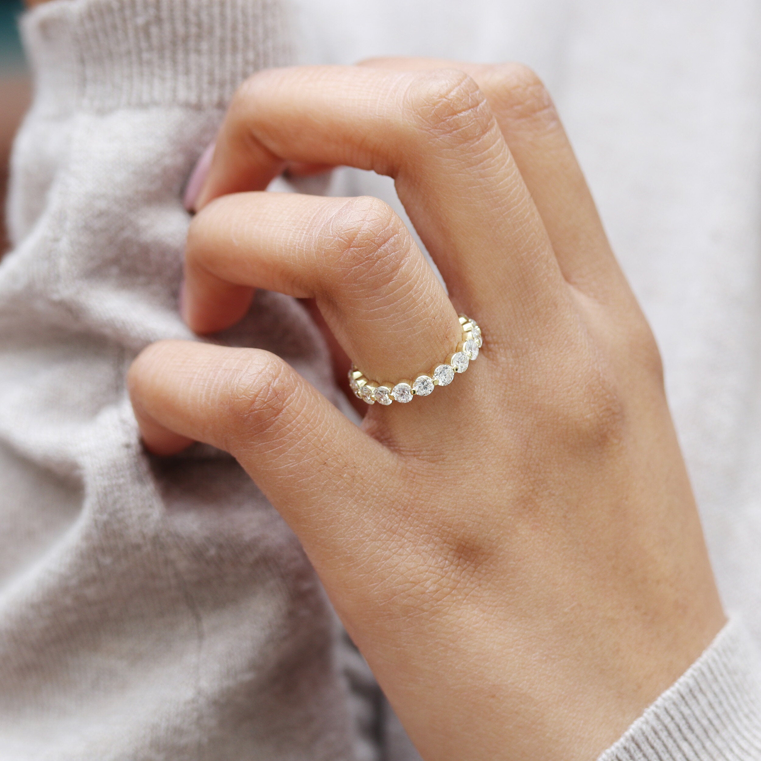 - Rings with full eternity stones cannot be resized due to their intricate design. For these rings, we recommend exchanging the ring for the correct size. Our customer service team is available to assist with this process.