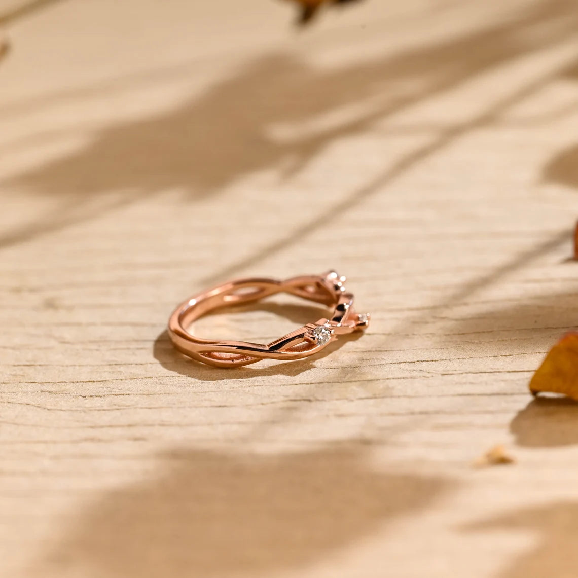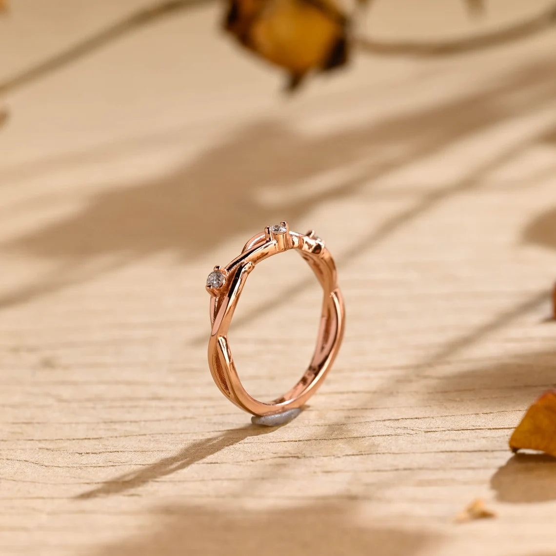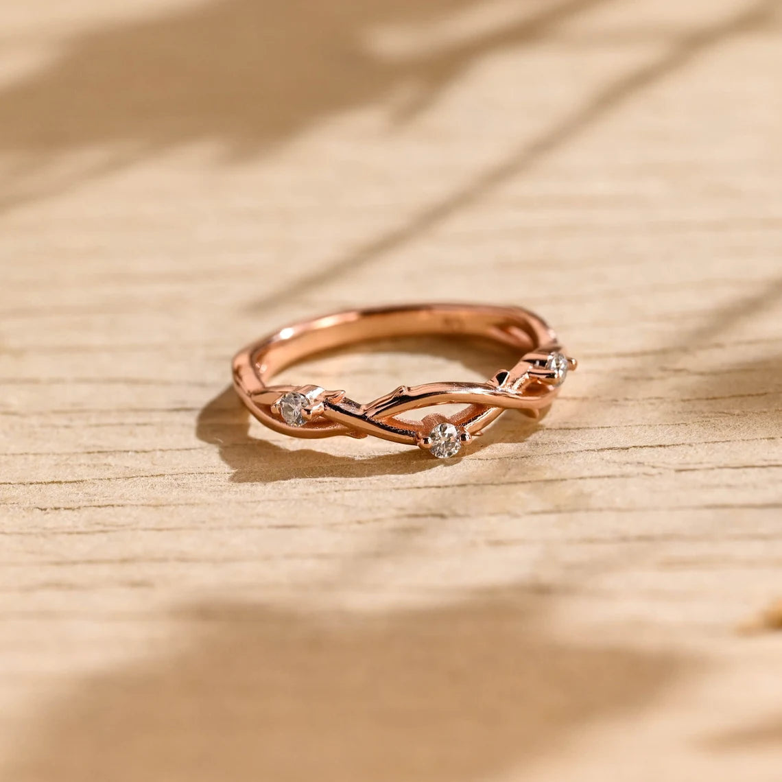Round Brilliant Cut Nature Inspired Moissanite Wedding Band