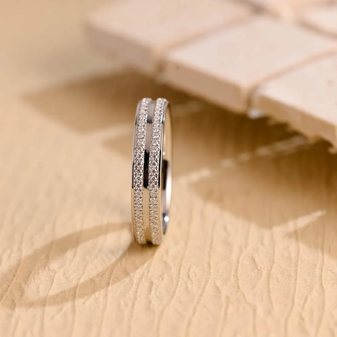Round Brilliant Diamond Doble Pave Setting Moissanite Wedding Band
