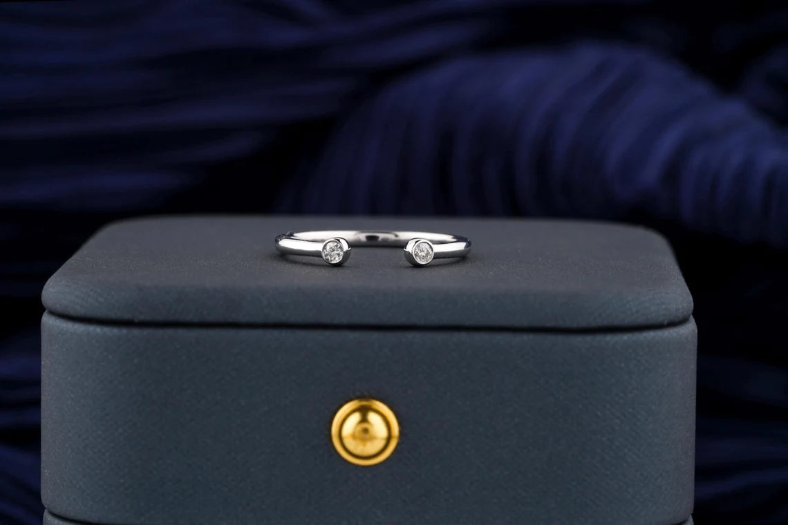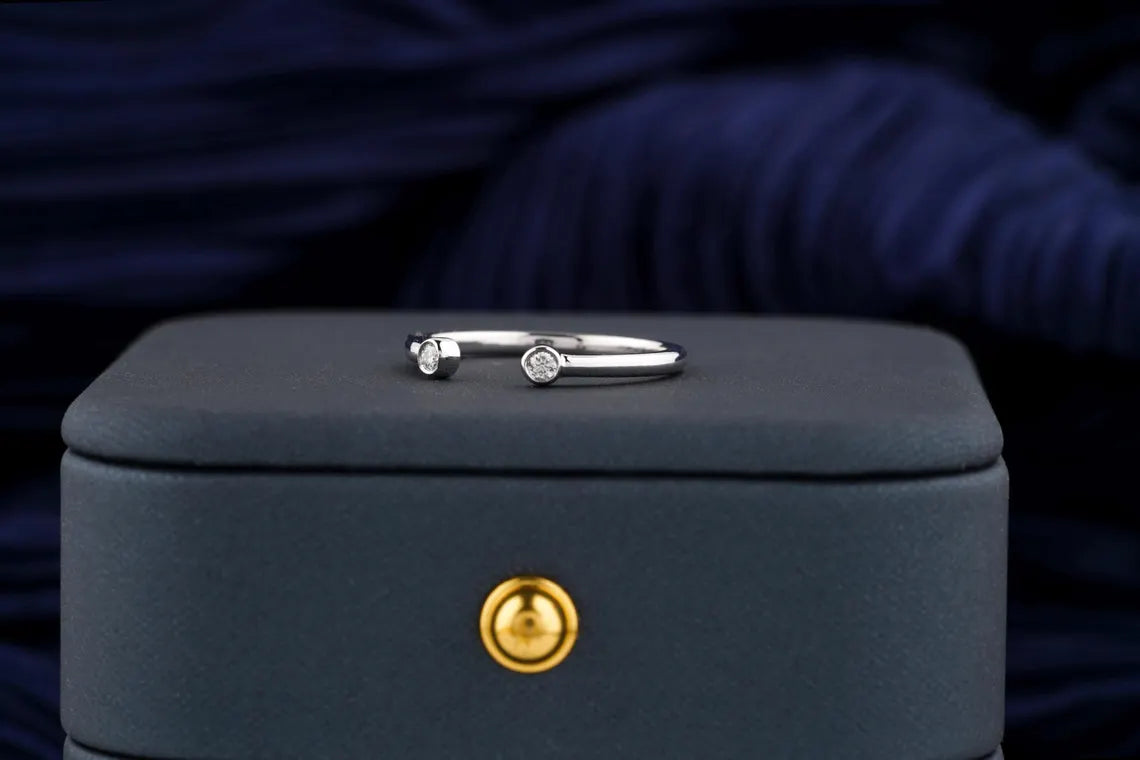 ✧ The 0.05 TCW Round Diamond Bezel Set Open Cuff Moissanite Wedding Band is a modern and chic piece that beautifully combines simplicity with elegance. Featuring a sleek open cuff design, this band showcases delicately set round diamonds in bezels that add a touch of sparkle without overwhelming the minimalist aesthetic. Crafted from high-quality materials, this ring is perfect for everyday wear, making it an ideal choice for those seeking a stylish and contemporary alternative to traditional wedding bands.