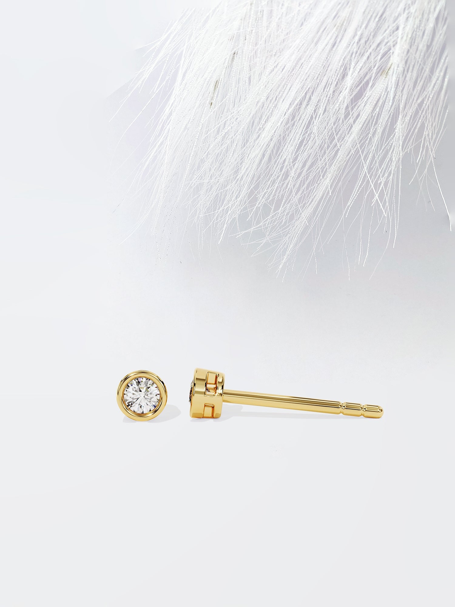 ✥ Introducing our delicate 0.10ct round-cut bezel set moissanite diamond earrings for women, crafted to add a touch of elegance and sparkle. Available in solid gold options of 10K, 14K, or 18K purity, and in yellow, rose, or classic white gold tones, these earrings feature petite round-cut moissanite diamonds securely set in a stylish bezel setting. Their minimalist design and subtle sparkle make them perfect for everyday wear or special occasions, adding a hint of sophistication to any ensemble. These earrings are a versatile and cherished addition to your jewelry collection, reflecting timeless beauty and impeccable craftsmanship.